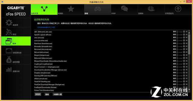 与其他型号的技嘉100系列主板相同,依然为用户提供了APPCenter应用,通过这款软件,可以方便快捷的下载该主板支持的各类工具软件。技嘉采用Intel网卡设计,通过cFosSPEED这款程序可以限制网络带宽、详细设定每个程序的网络占用情况,为玩家们提供更优质的网络游戏环境。