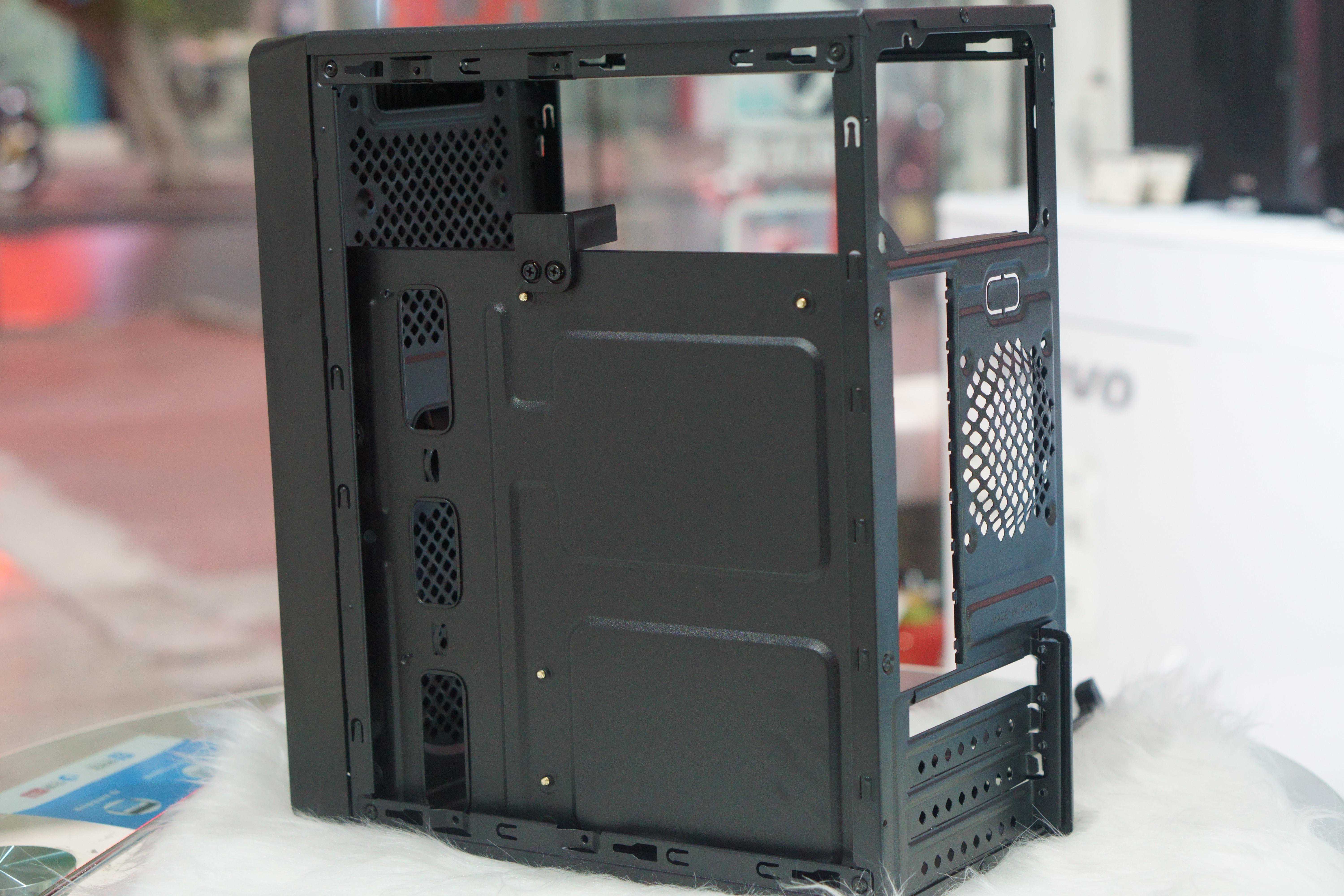 机箱外形采用传统设计,比较简约。并没有采用侧透设计。但是侧面板设置有较大的打孔区域,热量不大的话散热还是没问题的。