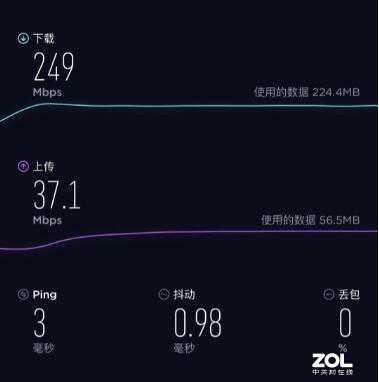 B点下载速率为249Mbps