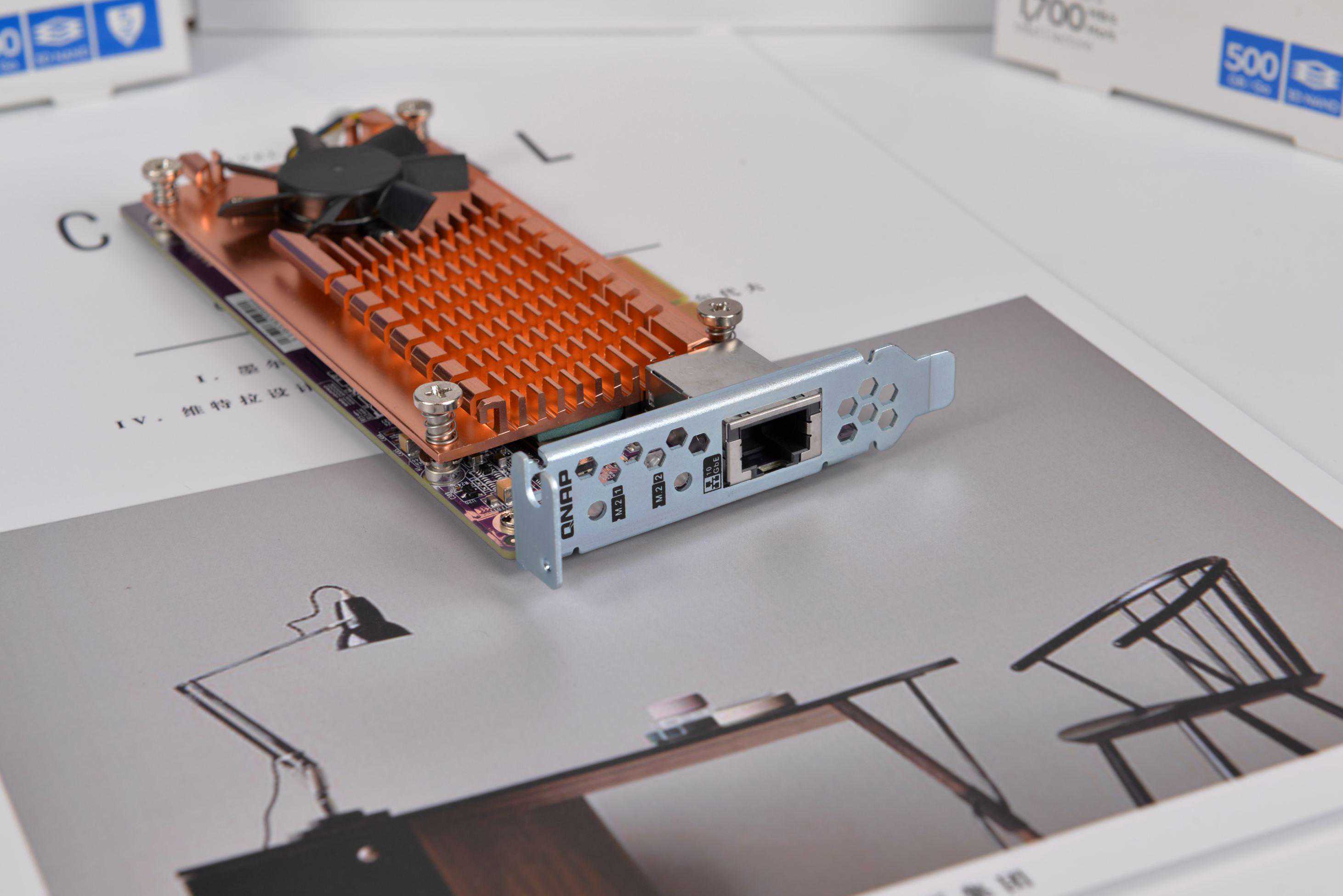威联通这块网卡还带有2个m2ssd的插槽,可以安装SSD实现高速缓存,帮助实现万兆速度。