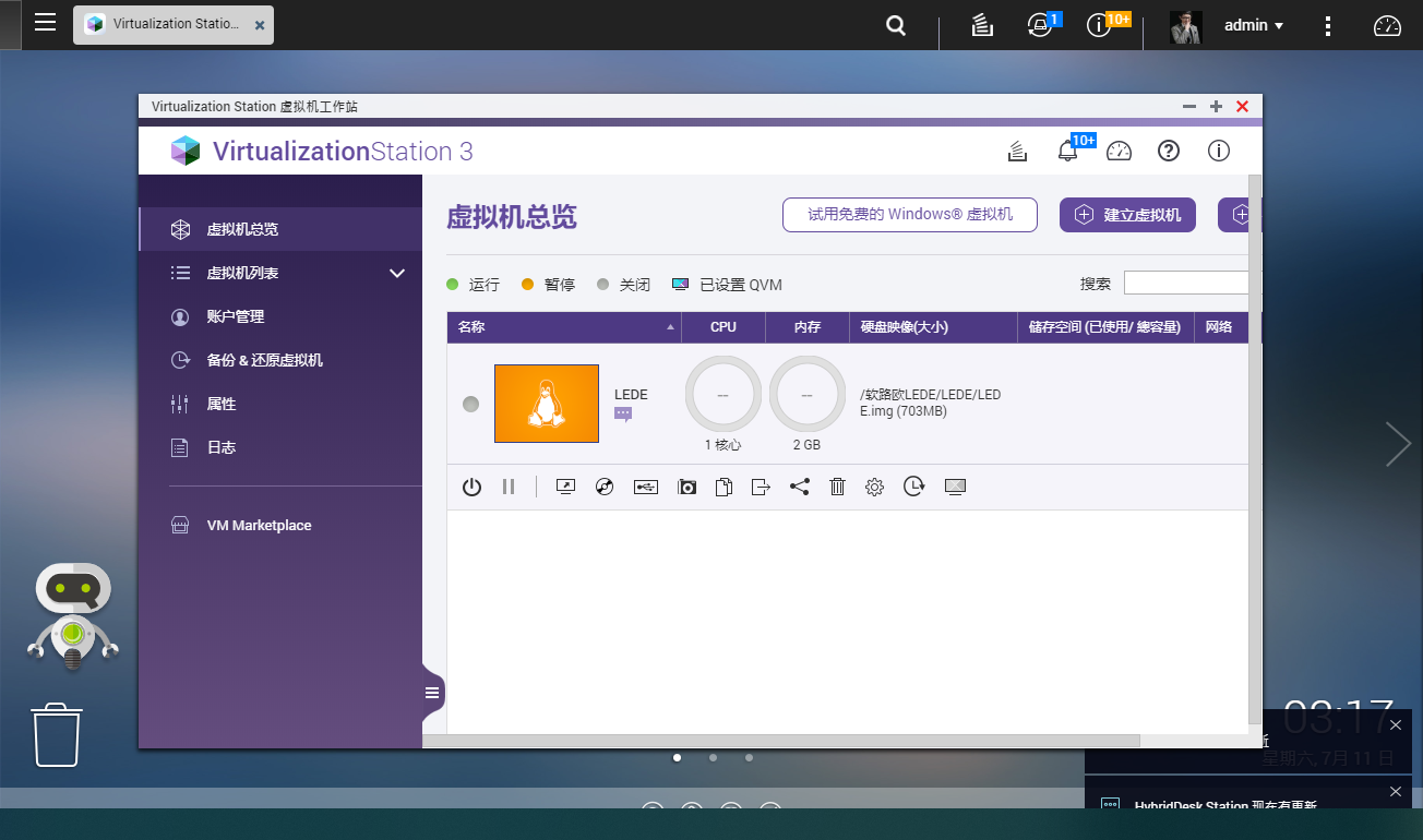▼VirtualizationStation是功能强大的虚拟机套件,结合储存管理和虚拟化技术,透过VirtualizationStation可以安装多种操作系统的虚拟机,例如:Windows、Linux、UNIX和Android等,可以把实体服务器搬移到虚拟机中运行。此外,利用威联通独有HDMI输出功能能,可以直接将虚拟机的画面输出到外接显示器上,方便对虚拟机的直接操作。我一般则是利用威联通的多网口,通过虚拟机构建软路由来使用,使其变身成为N合1的多功能服务器。