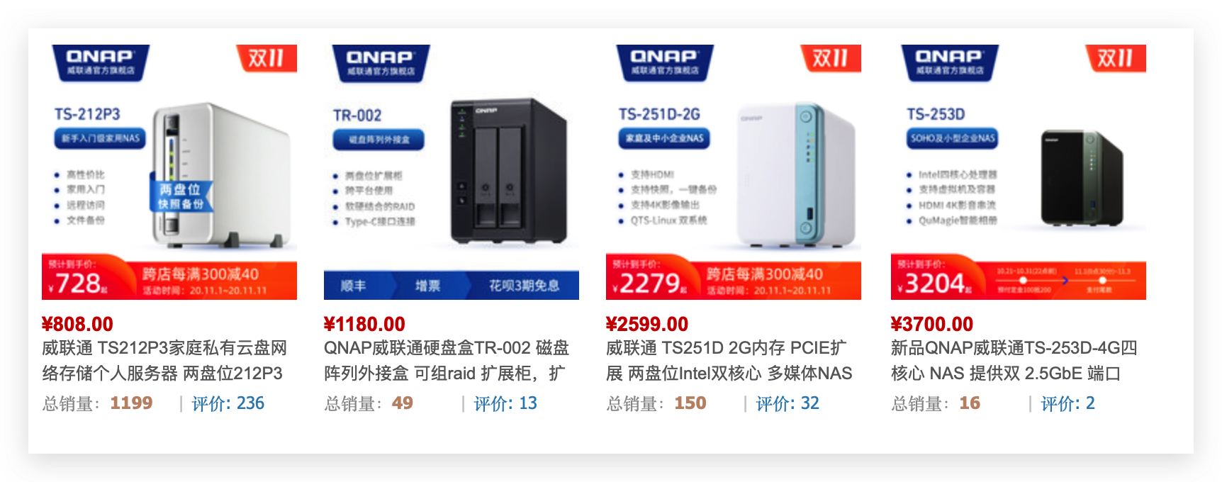 3、威联通选购推荐TS212P3———试水最佳机型(1000元以内)TS-212P3是我强烈推荐的试水机型,如果你从来没有接触过NAS,或者对上手威联通心存疑虑,那么TS-212p3是最好的选择。因为作为入门级机型,TS-212p3价格足够便宜,容错成本几乎可以忽略不计,双十一活动价只要700左右,PPD的价格甚至只有620元。即便你上手后发现后悔,或者升级新机器,TS-212p3咸鱼的出售价也能在500以上。可以说是最便宜的正版NAS没有之一。