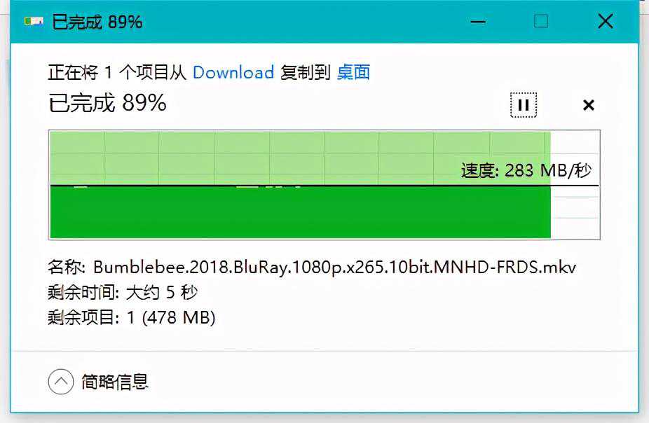▼4盘位组建raid5后,通过测试TS-453Dmini的2.5G网口,可以轻松跑满速度。读取速度稳定在283MB/S,写入速度也可以维持在276MB/S左右