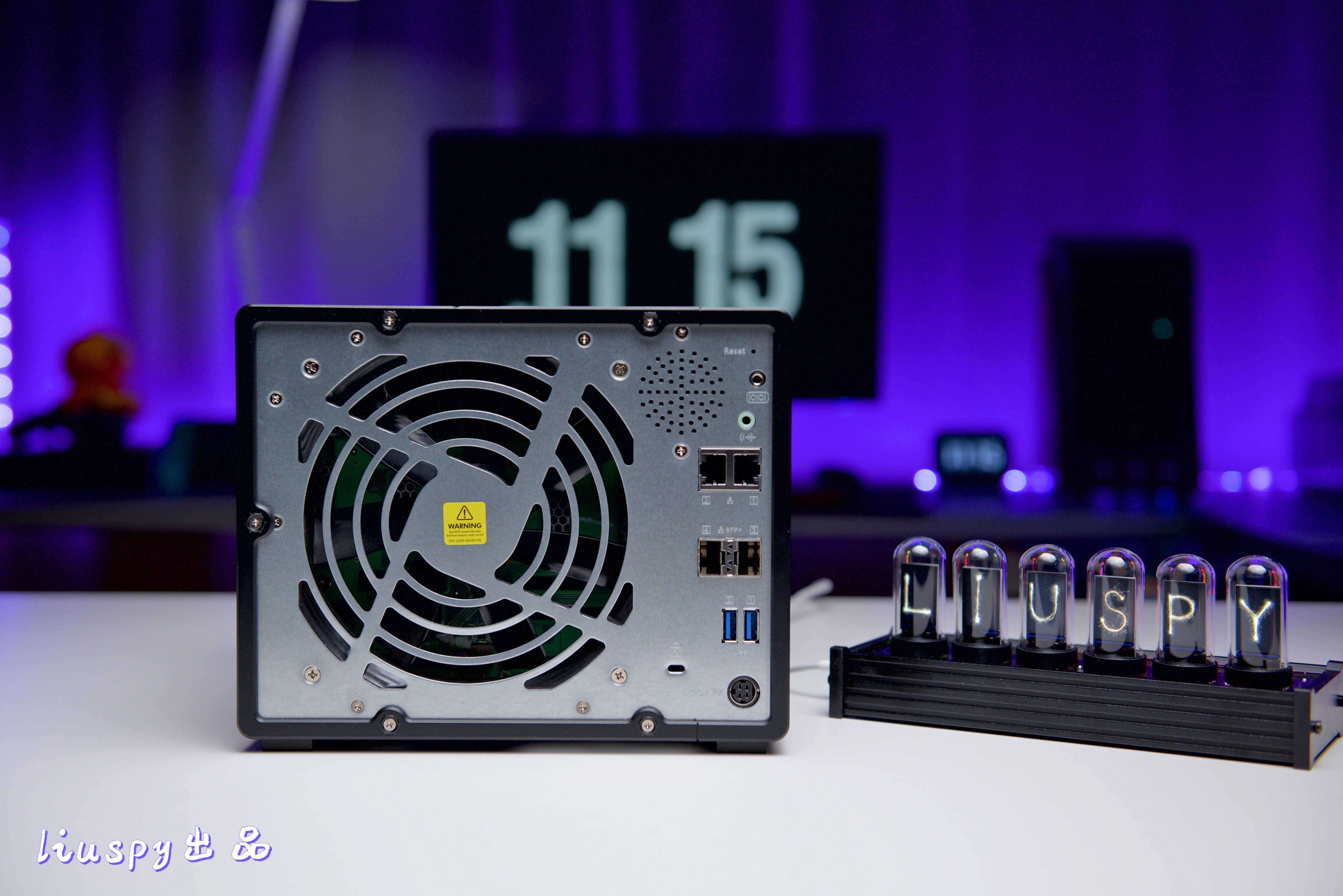 ▼TS-932X的背部接口非常丰富,除了常规的双千兆网口外,最独特的就是这个配置了双万兆SFP+接口,通过与万兆设备连接,可以顺利实现超高速的读写。