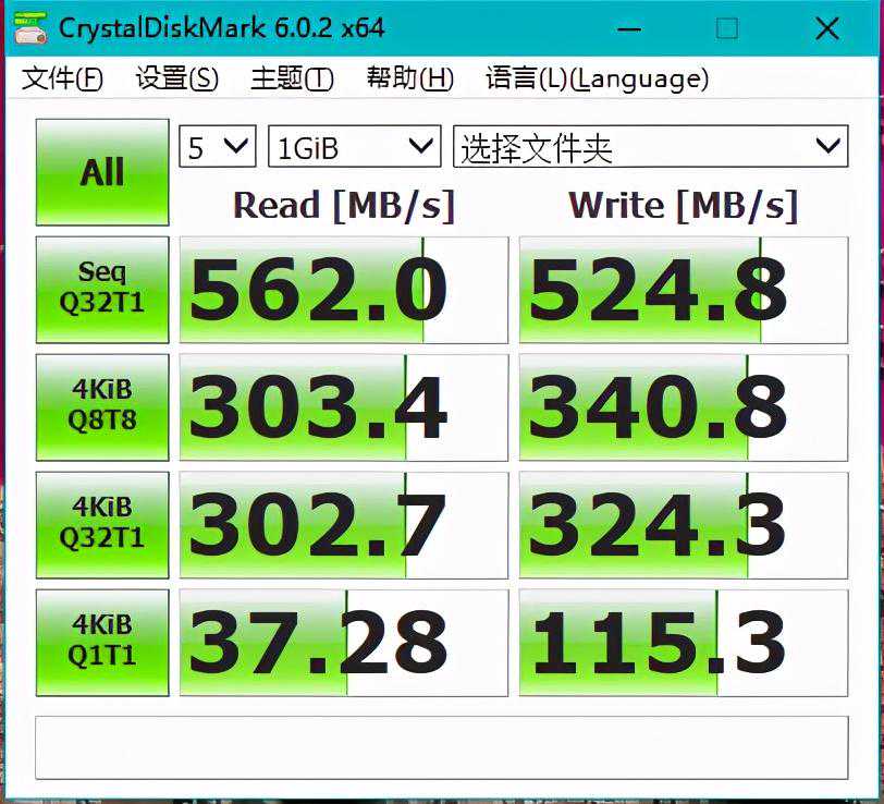 ▼使用SATA接口的金士顿A400性能测试表现还是不错的,这块硬盘最大的优势就是性价比高,给NAS用作高速缓存是不错的选择。在连续读写测试中都能够跑出500+MB/S的速度。