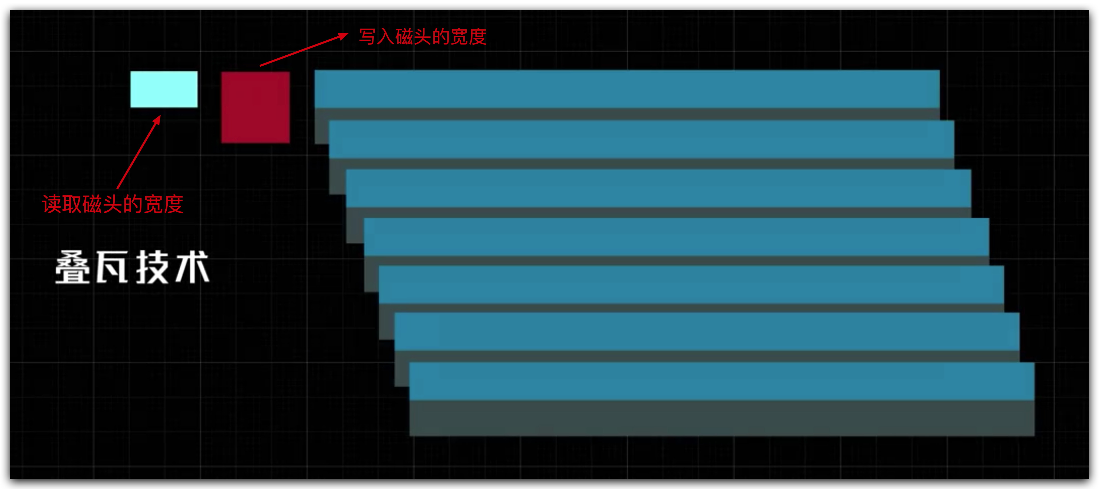 不少朋友在部署NAS时候将大部分的预算都给了NAS主机,忽视了硬盘的重要性,这样是绝对不可取的。我们所有数据的存储都是以硬盘为载体的,硬盘直接关系到数据安全,数据安全远比你想象的更重要,只有失去了才追悔莫及。硬盘的选购绝对不能马虎,尤其SMR硬盘大量充斥市场的情况下,我们更应该注意。SMR不同于PMR不允许磁道相互重叠的做法,SMR让数据位循序写入,如下图所示,写入磁头将数据如瓦片般堆叠在另一磁道的部分面积上,仍保留读取磁头宽度的原磁道,读取磁头仍可从磁道上未被覆盖的部分来读取数据,借此达到增加磁录密度的目的。这种做法对数据读取没有任何影响,但是一旦对已写入的数据编辑或覆盖时,写入磁头不能在原有的磁道上位置上进行修改,因为这样做会损坏相邻磁道。SMR磁盘的做法是,编辑后的数据会先在磁盘上的空白处写入,原先旧数据的磁道会暂时维持不动。等到HDD闲置时会执行重组机制,将原先磁道上的旧数据位自动擦除,并重新成为可用空间以供新数据写入。