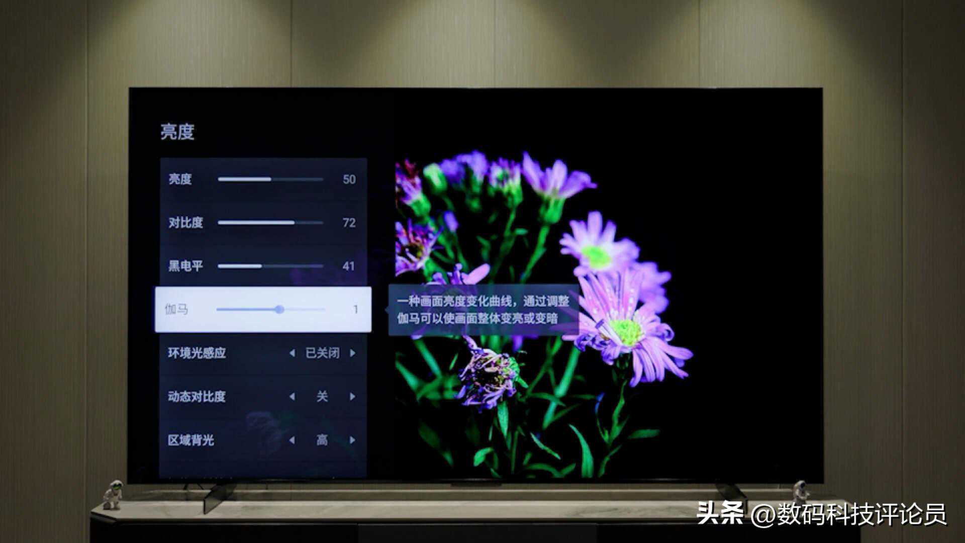 需要跟大家提一下,电视预设了多种色彩模式,如果在某些场景下,这几种模式你都不是很喜欢,我们也可以根据自己的喜好,对伽马值、黑电平进行针对性的调节,不过一般用户我建议选择默认的那几个模式即可,色彩倾向大众审美。