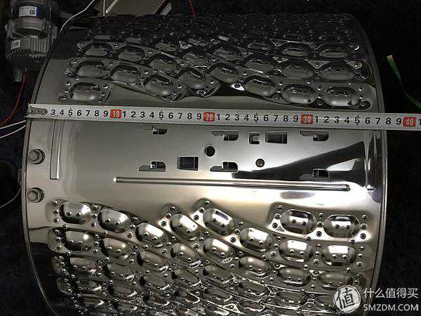 盛水桶这些凹槽以后都会成为藏污纳垢的好地方,这些小格子就是加强筋结构,一半里一半外能够节省用料,还能增加强度。但是对洗衣机卫生却没有任何好处!