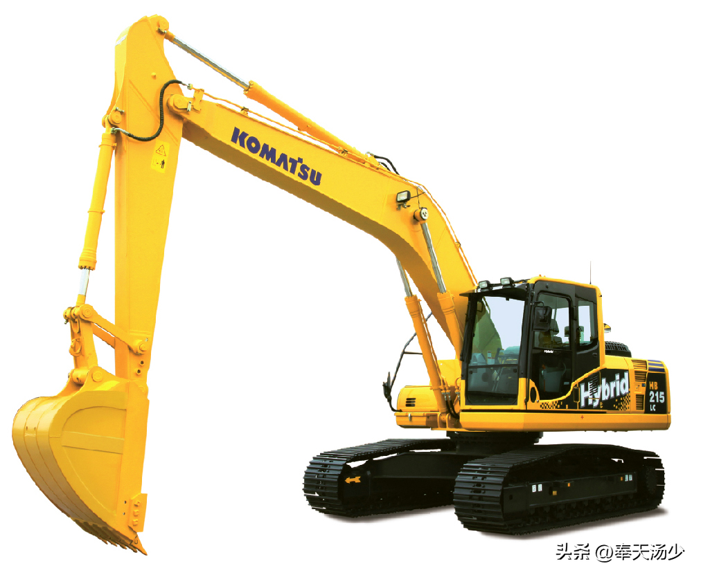 电动挖掘机,最早在中国市场内开发并使用的,是日本工程机械巨头小松公司。小松早在2011年左右就推出了油电混合挖掘机-HB205/HB215型号。发动机带动发电机马达,通过蓄能器,变频器达到存储电能,释放电能,最终带动回转马达。完成回转动作的电能操作。