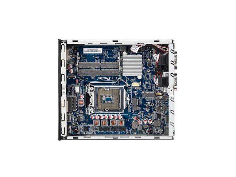麻雀虽小,五脏俱全,内部采用IntelH370芯片组平台,支持桌面型八代酷睿CoffeeLake-S,最大热设计功耗65W,最大内存容量可达32GB,虽然这是一款迷你的主机,但是电脑应该配置有的接口一个都没落下,什么USB插口还有3.5mm耳机输出和麦克风输入、SD读卡器都配置齐全了。