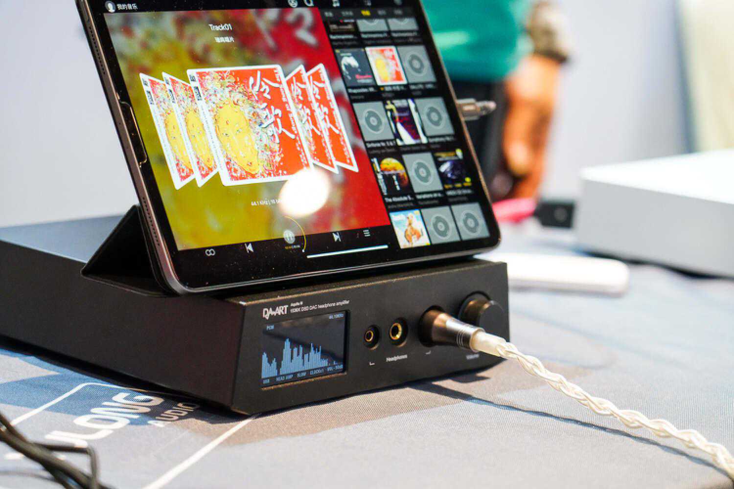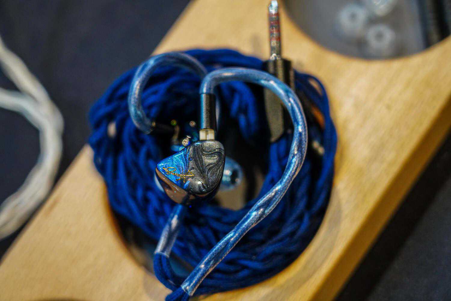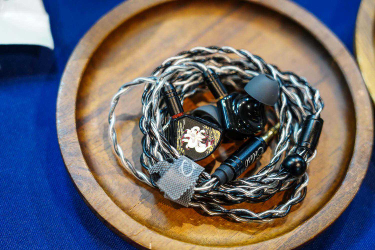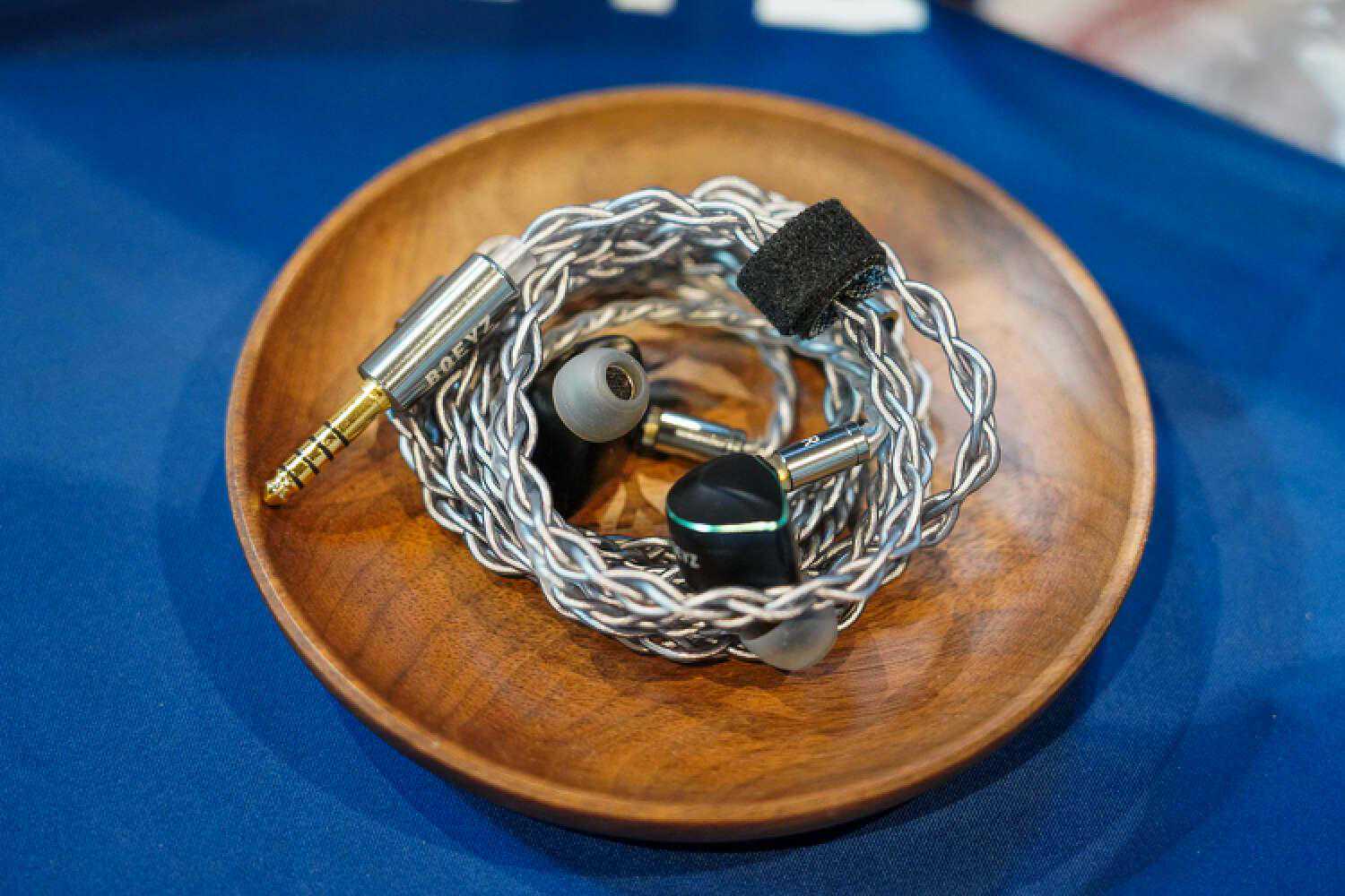 我乍一看还以为他们带了DHC的大耳线来参展,没想到是个2pin插针,给耳塞用的,佩戴十分的灾难,声音非常的好.这根线听起来会比常规的耳塞线明显密度高出一截来,结像硬朗而清晰,不是那种细而锐的清晰,而是蓬松的、丰厚的,音色比较中正大气,声场主要提升的是纵向,售价貌似是在两万的样子。