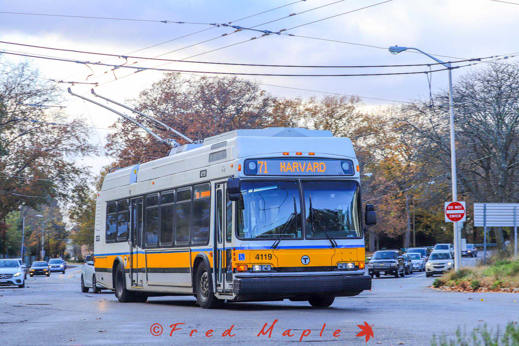 波士顿的无轨电车系统目前由MassachusettsBayTransportationAuthority(MBTA)运营,SL1、SL2、SL3、71、73、77A共6条线路使用无轨电车。博主曾在2019年11月到访。
