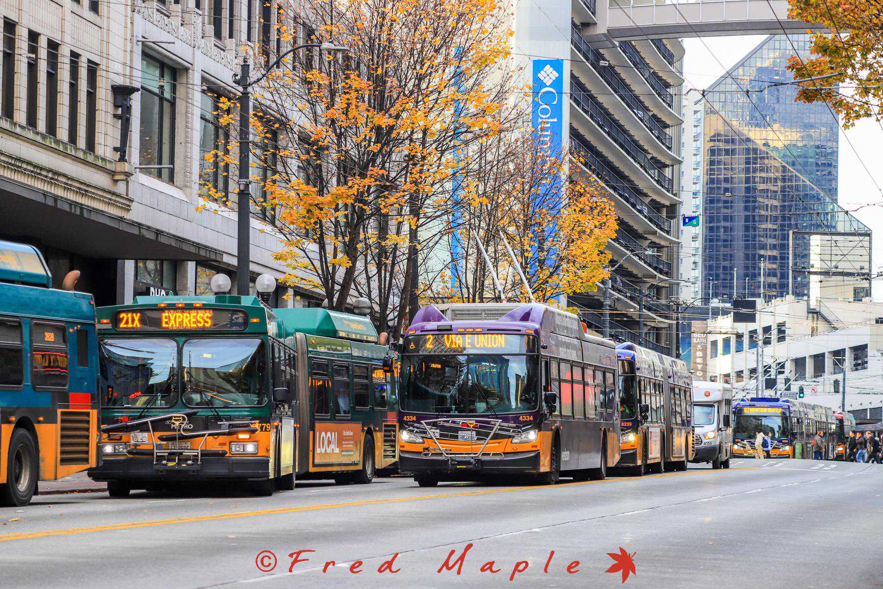 西雅图的无轨电车由KingCountyMetro运营,自2016年车辆更新换代完成后,现存车辆均为Xcelsior。西雅图的无轨电车系统具有不小的规模,市中心1/2/3/4/7/10/12/13/14/36/43/44/47/49/70共15条线路使用无轨电车(但不完全使用)。值得一提的是,位于DowntownSeattle的3rdAve是有名的公交道路,此路段大部分时段仅允许公交车及紧急车辆通行,多条无轨电车线路走行颇为壮观。
