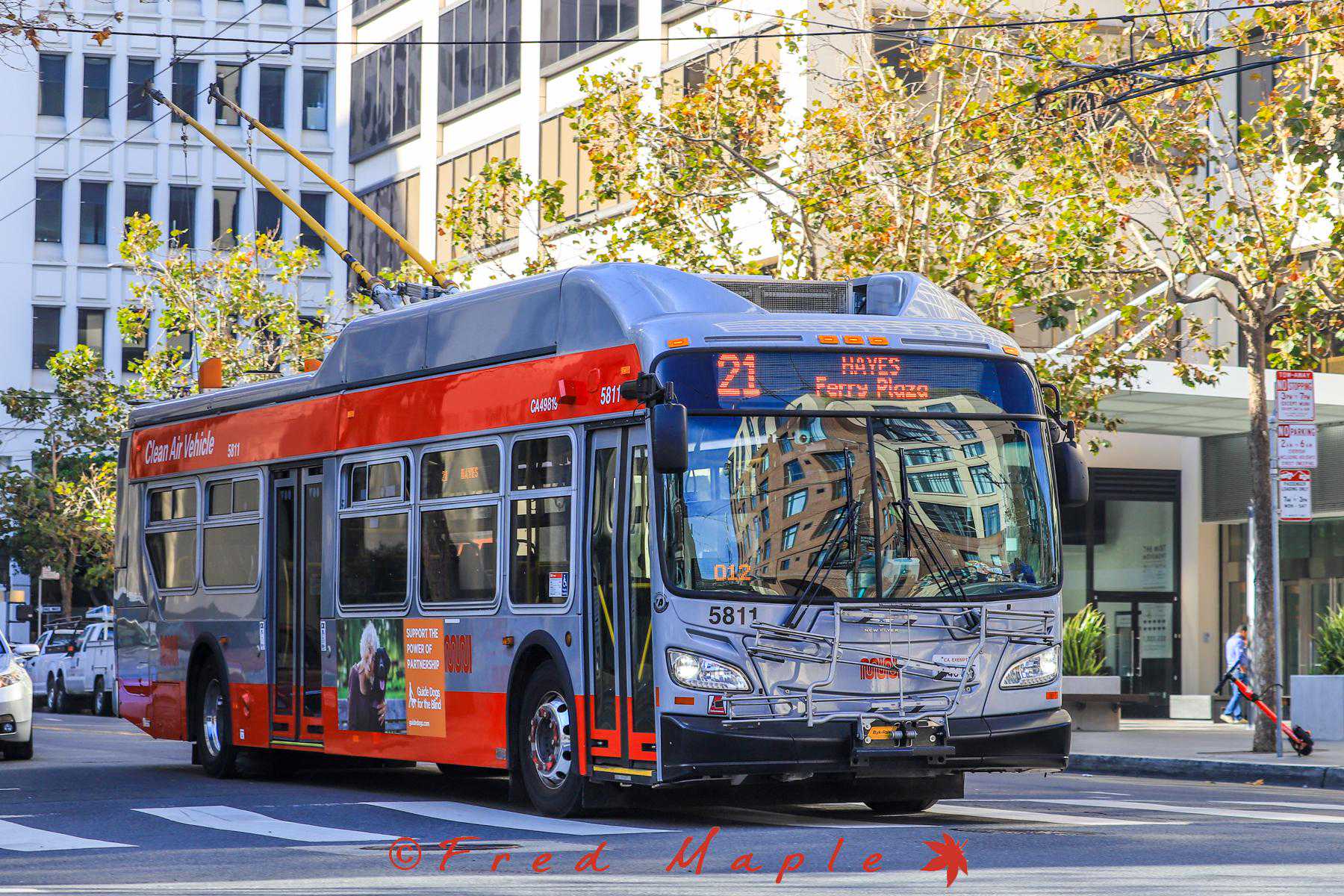 旧金山无轨电车系统应该是在国内最有名的一个系统了,由SanFranciscoMunicipalRailway(MUNI)运营。说句题外话,这个都会圈的交通系统组成非常完善,巴士有不少北美少见的车型,保留的缆车(cablecar)和有轨电车(streetcar),地铁系统(BART),通勤火车等等,的确推荐车迷打卡。2019年ETI全部下线后(MUNI保留了一部14TrSF,车号5538),目前现存品牌只有NFI。