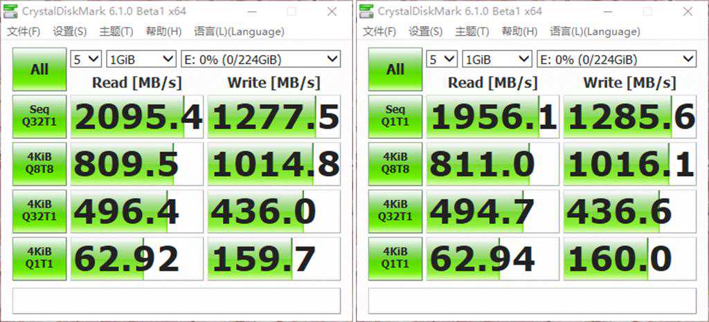 ▼一般官方给出是标称连续读写速度都是高队列(QD)的测试成绩。CDM第一列就是队列深度为32的连续读写速度,这个标准下N930达到了2100/1280MB/s,已经超额完成了任务。如果把队列(QD)设置成1,连续读取有些下降,但是依然高于标称值。