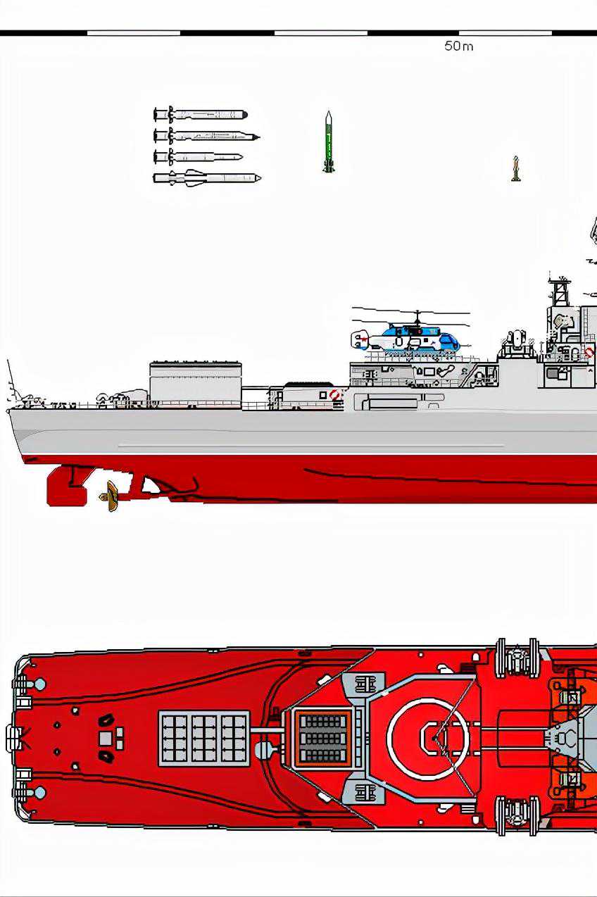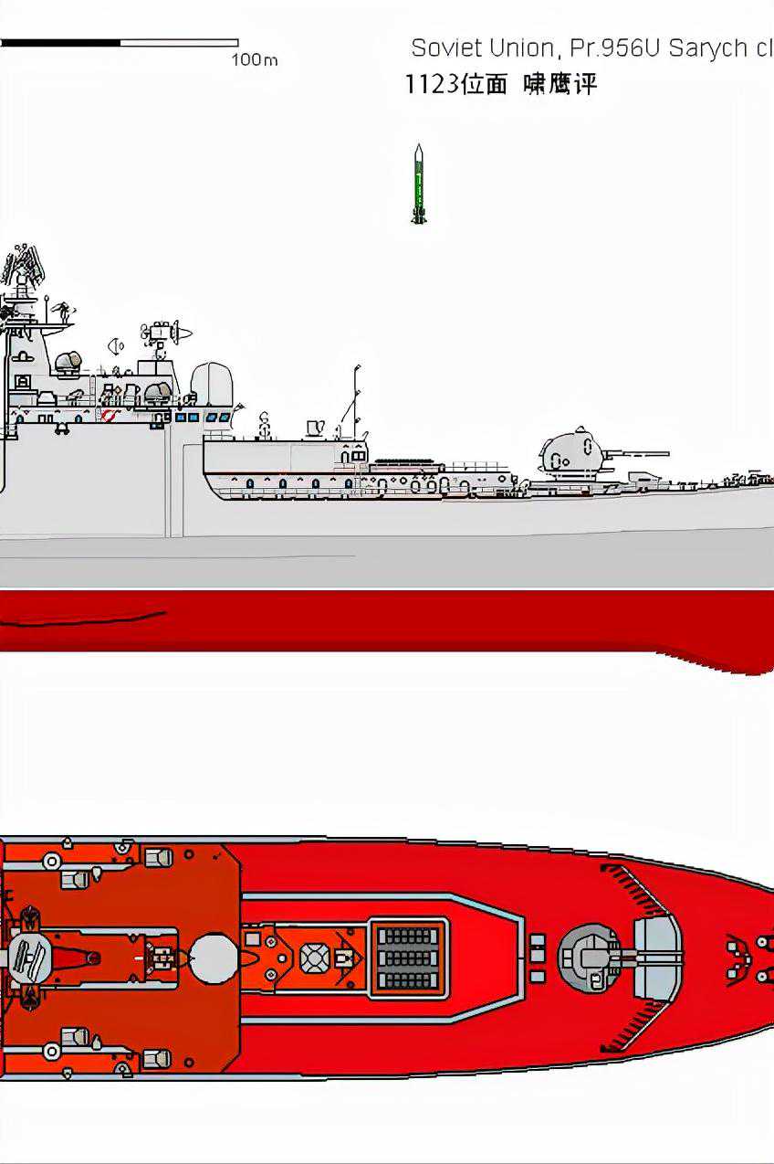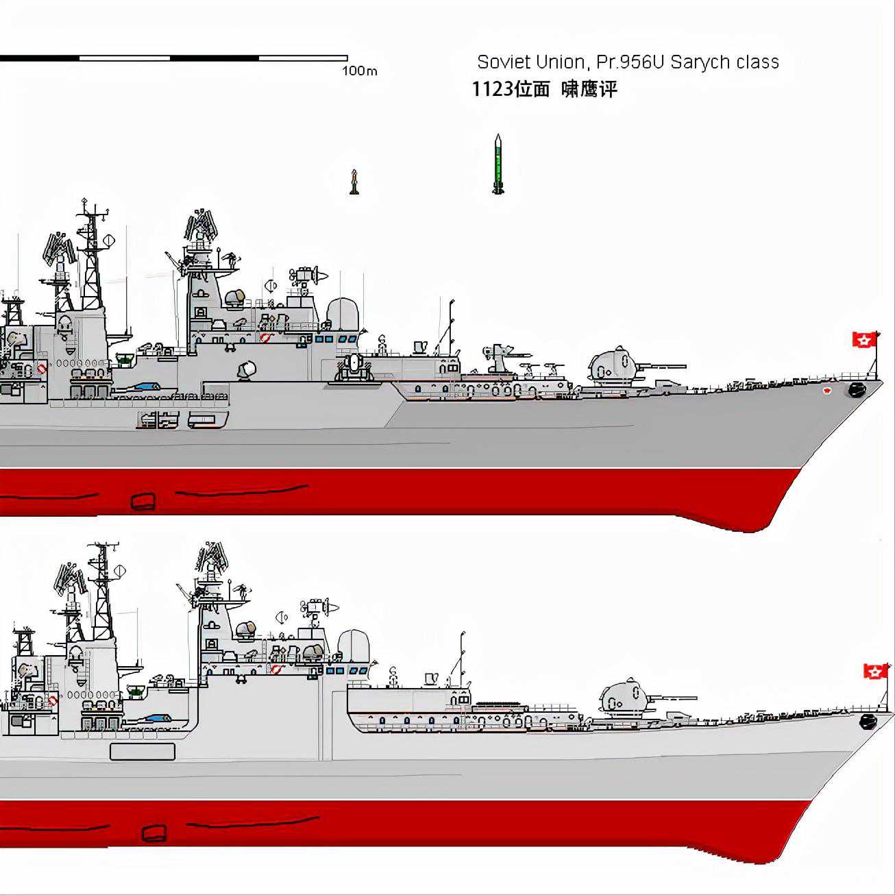 只不过盘子没有按照这个的武器布局画,而是简简单单的以956U为基础,使用垂直发射单元替换掉单臂发射架,顺带增加上层建筑宽度而已。