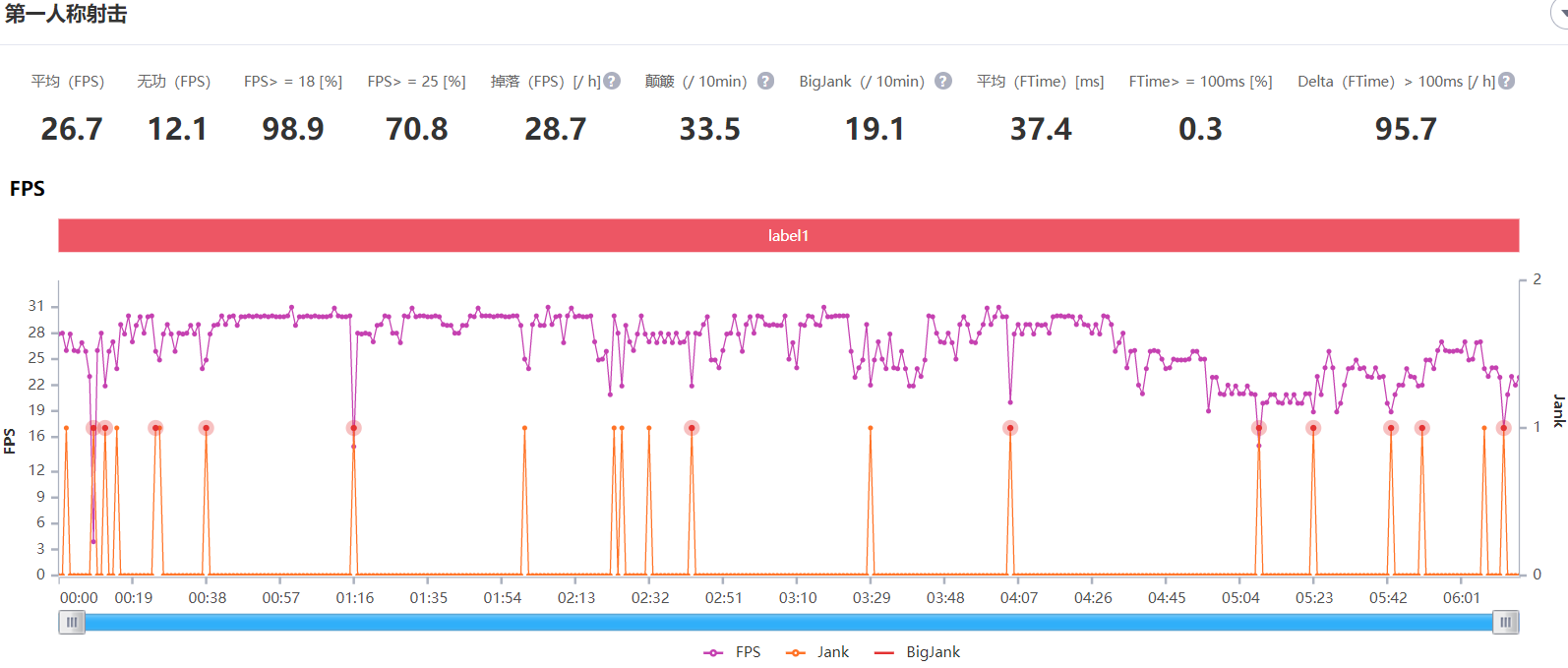 我们为了弄清楚这个问题,花了大量的时间通过Perfdog记录了荣耀10X的游戏帧率变化,而且重复多次,发现了一些很有意思的数据。