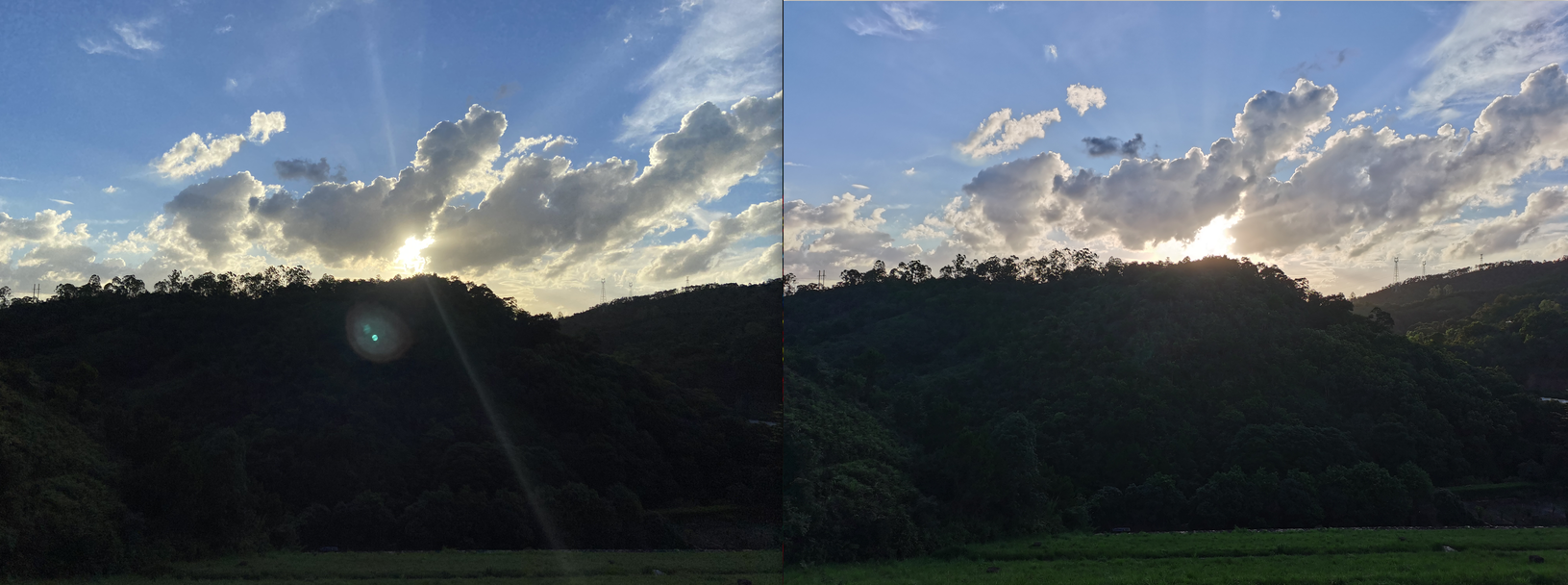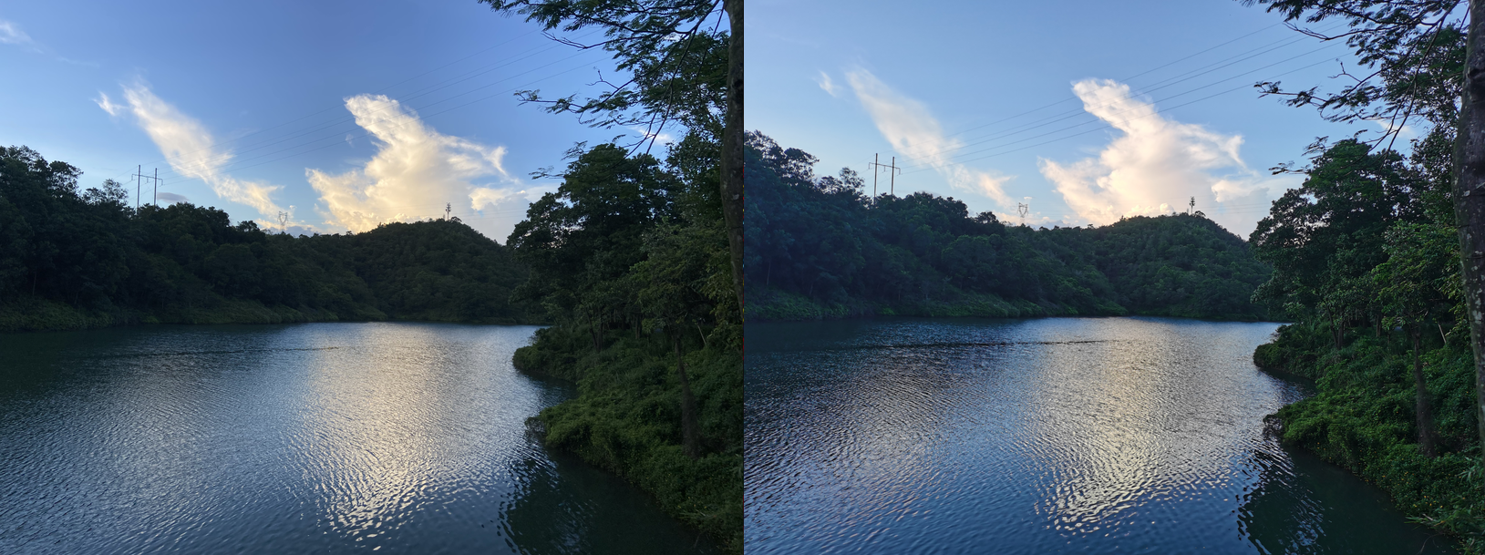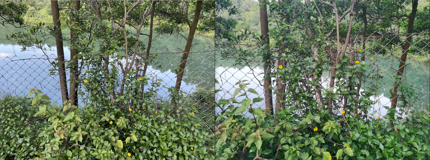 同为荣耀X10拍摄,左边是默认的AI拍摄样张,右边是关闭AI后的拍摄样张。