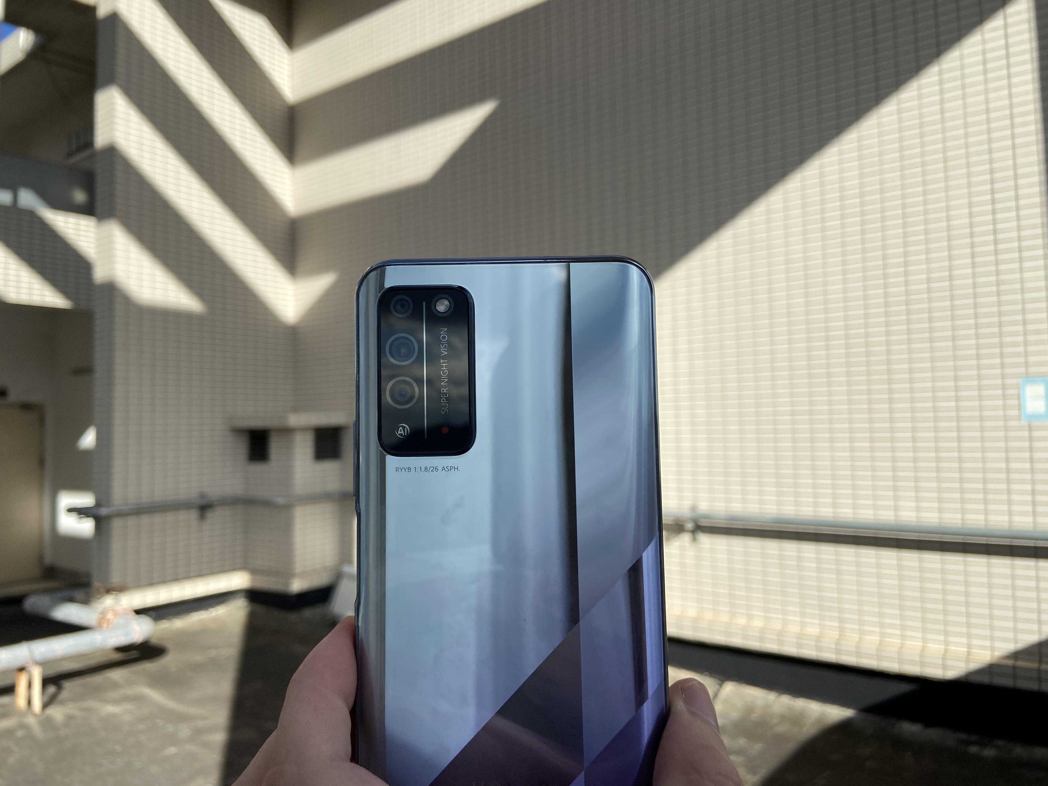 我手上这台是竞速蓝版本,背壳采用了由深紫色向淡蓝色过渡的渐变设计。单纯的渐变色其实并不好看,太柔和。荣耀X10在渐变色的基础上,多了半道「X」形状的反光纹理,科技感更浓重一些,审美风格偏向于男性。