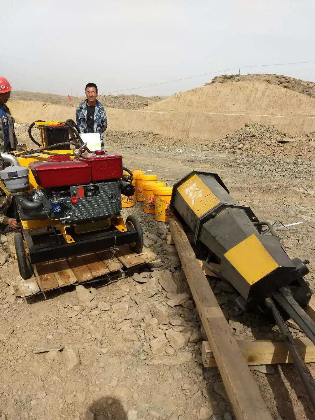 液压岩石劈裂机有两种,一种需要挖机吊着工作,由配套的液压泵站提供动力。特点需要人工少,这种由挖机吊着的劈裂机,一个人操作挖机,把劈裂机的枪头,放进提前打好的孔内,在启用液压泵站,就可以进行岩石劈裂工作。