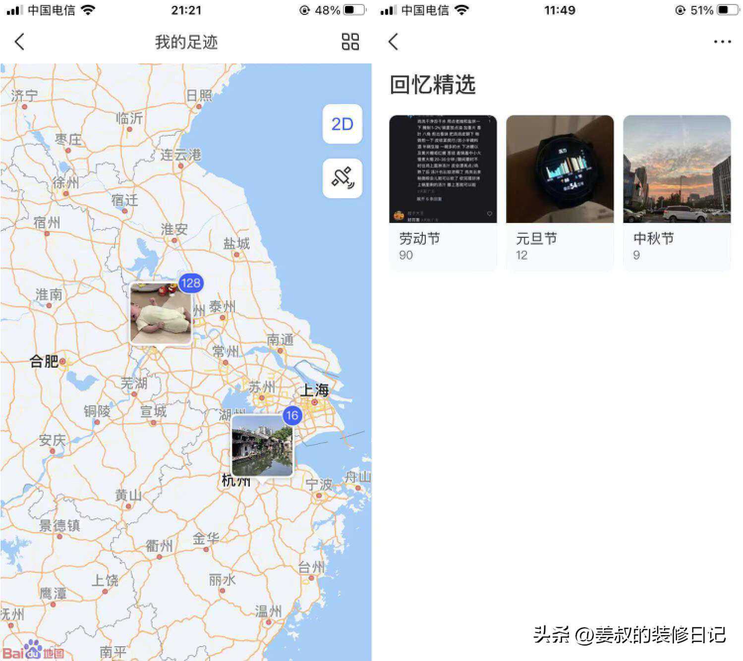 如果是经常旅行的,还会根据图片的exif信息,自动生成足迹图片,展示在不同地点拍摄的图片。当然还有“回忆精选”,展示逻辑应该是根据时间节点来区分的,比如元旦、中秋等。