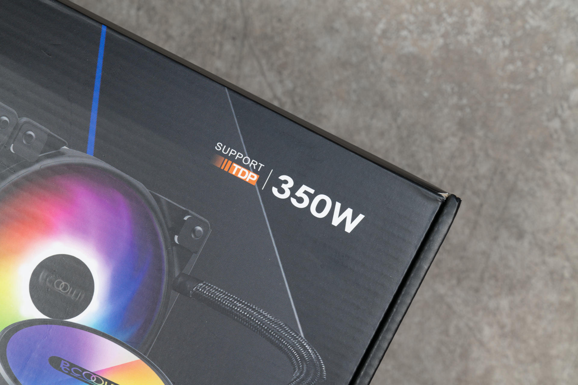 外观展示▲包装的正面直接展示出这款水冷的RGB灯效,尤其是冷头的灯效让我特别种草。