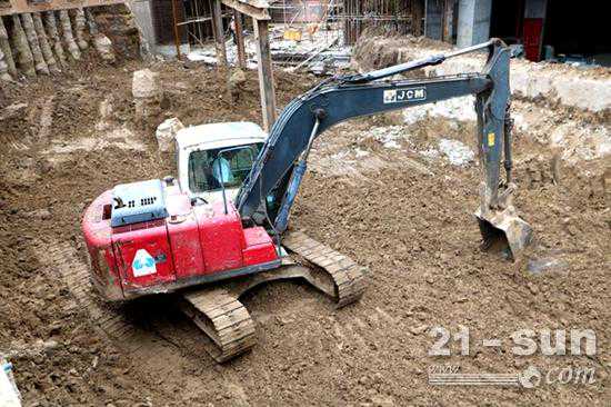 林老板承接了淮安一家大型商场的土方施工工程,他的一台挖掘机在现场施工作业。这是一台红白黑色的山重建机JCM(山推挖掘机前身)913B挖掘机,购买于2007年,至今已经有13年,工作小时已超过3万小时,型号标识已经磨损看不清,但性能和设备状况依旧非常良好。林老板指着这台机子说,“这台可是我的宝贝,谁买都不卖!”