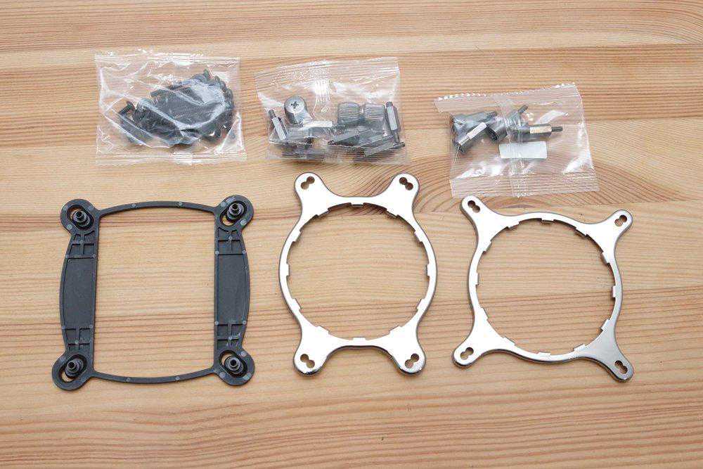 扣具系统一览,中间的螺丝分布偏长方形的扣具是针对AMD平台