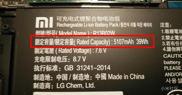 机械革命S1官方给出的参考续航时间为8小时+,而配置几乎一样的小米装备的是39Wh的电池(拆解图片来自网络),比机械革命S1的电池容量小了11Wh,但小米公布的参考续航时间为9.5小时,看来都只能作为“参考”。