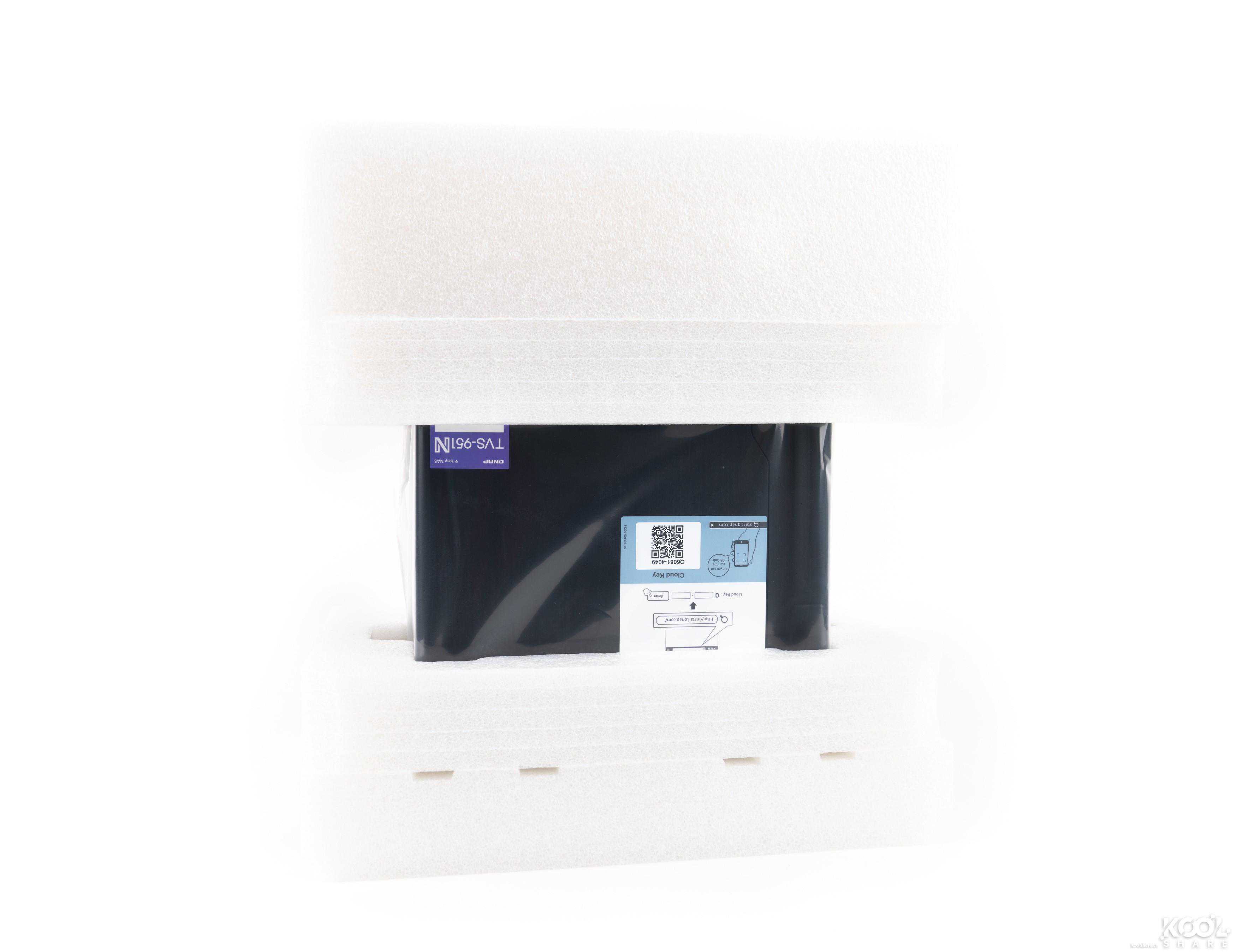 ▲取出包装盒中所有物件,可以看到NAS本体被保护的很好,四周都是厚厚的海绵,可以避免运输过程中的磕碰