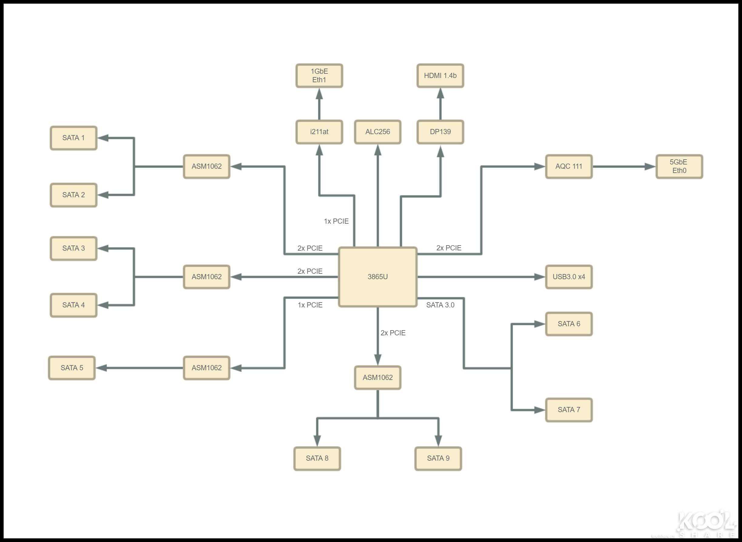 ▲ASM1062,PCIE转SATA控制芯片