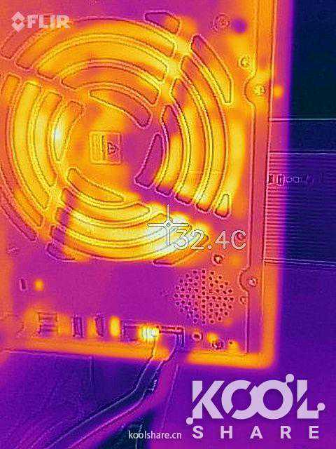 ▲背部系统风扇处,温度最高为32.4度左右