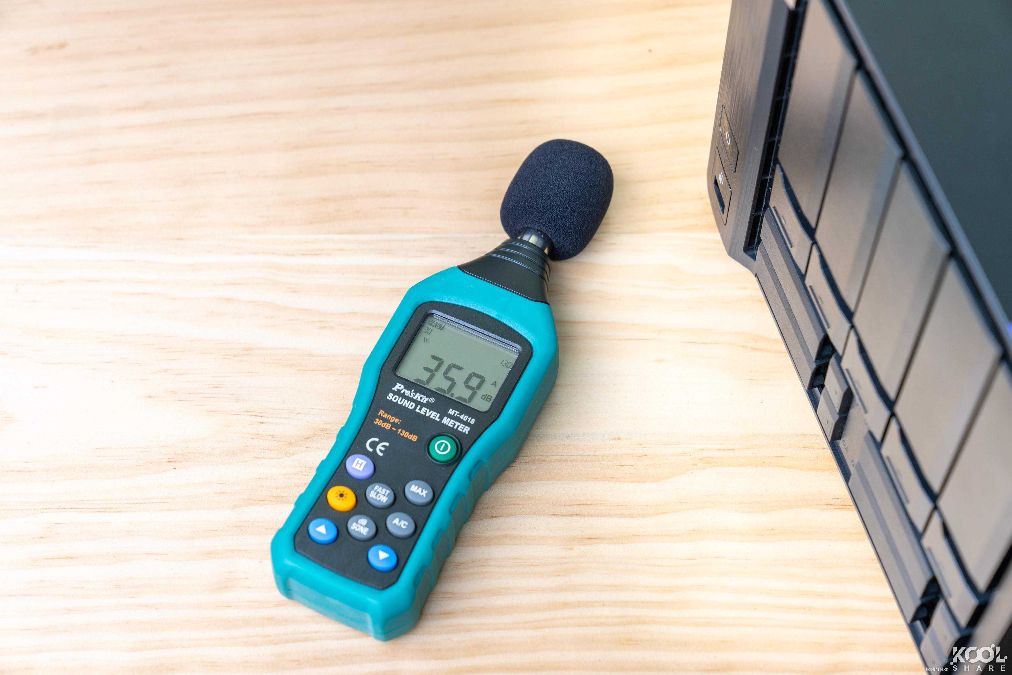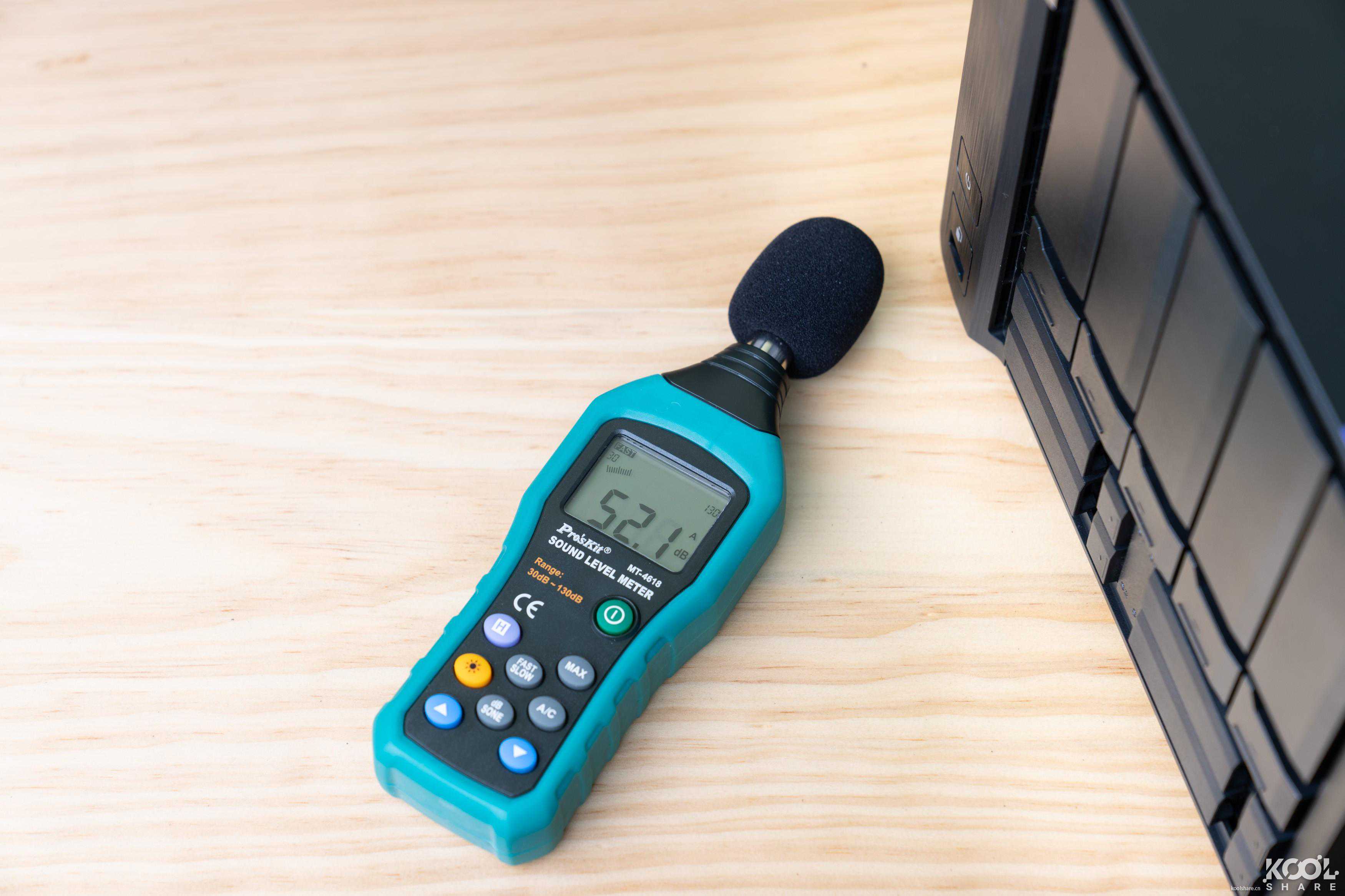 ▲系统风扇转速设为100%时,NAS噪音为52.1dB左右