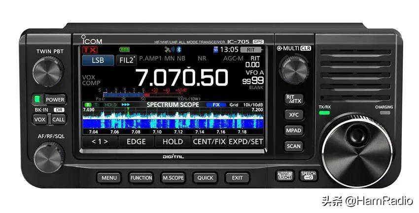 频谱和瀑布图的优势只有大屏幕才能够充分发挥出来,ic-705配备了和ic-7300一样大的4.3英寸屏幕。屏幕只有2英寸左右,看起来眼疼的电台设备发挥不出SDR的优势,那只是在炒作SDR概念。我曾经有一款1.8寸屏幕的SDR短波电台,从来没用它通联过,我很少打开它,看到它我根本没有打开的欲望。小屏幕的SDR设备是不会受到大家欢迎的,除非价格非常便宜。