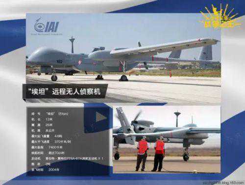 埃坦”无人机(又称“苍鹭”TP)是IAI于2004年推出的远程无人机,其26米的翼展与波音737客机相当,是以色列空军现役最大的无人机,从右小图中,和地勤人员的对比也能看出其尺寸之大。
