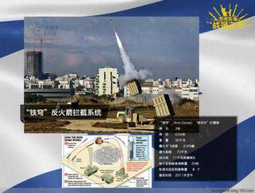 IAI的代表产品还有著名的“铁穹”反火箭拦截系统。据IAI官方资料,一套“铁穹”可以保护约150平方千米的区域。小图为其作战步骤,1敌方火箭发射;2雷达在5秒内探测到目标,将数据传递至作战指挥系统;3指挥系统下令发射拦截弹;4.两枚拦截弹升空摧毁目标。据统计,2012年11月的3天中,以军遭737枚火箭弹袭击,其中245枚被“铁穹”拦截。