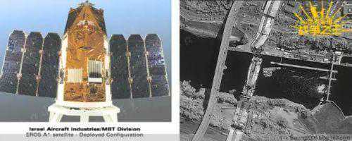 研发各种高性能卫星也是IAI的传统强势领域,EROS系列高分辨率侦察卫星是其中之一。据IAI官方资料,EROS-B的最大分辨率可达70厘米。左图为EROS-A1卫星。右图为EROS-B卫星拍摄的垮塌后的美国明尼阿波利斯大桥的卫星图像,摄于2007年8月8日。
