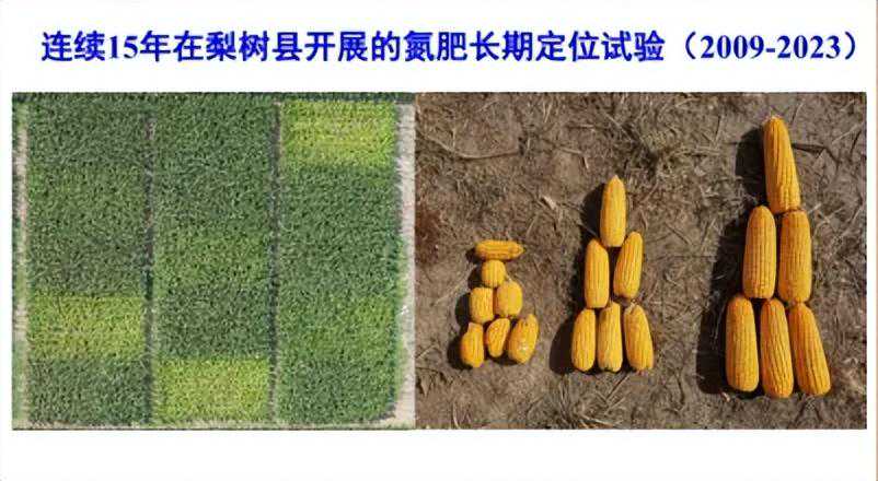 报告开始之前,我群里发了一张照片。这张照片是我2009年还是研究生时,在梨树的四棵树乡开展长期定位实验时的情景。从2009年至今,我们进行了一个氮肥的长期管理试验。照片中,左侧是航拍图像,黄色的部分应该是2021或2022年的照片,显示了连续十多年不施肥的情况。黄色的区域代表了没有氮肥的投入。右侧的玉米穗左侧较小的一堆穗也反映了十多年未施氮肥的玉米棒的大小。