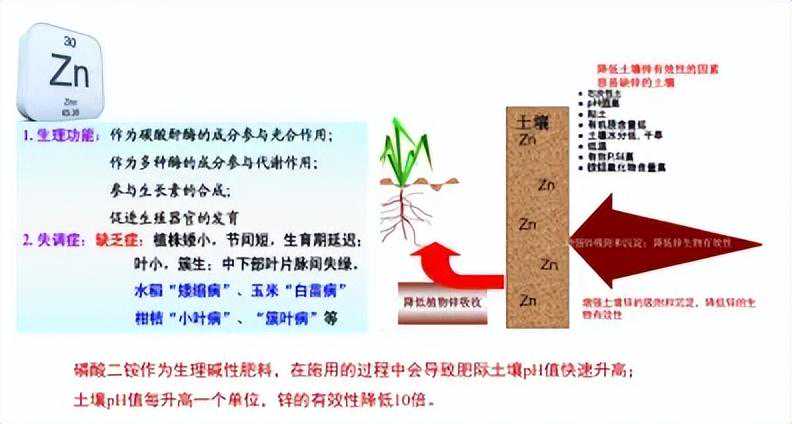 玉米较为敏感的微量元素是锌。然而,在土壤中,锌很容易失效,尤其是土壤pH值。与图二中PH值有关系的,还有磷,也就是我我们农业生产过程当中的磷酸二铵。磷酸二铵作为一种生理碱性肥料,在施用过程中,其周边土壤pH值会上升,导致土壤中锌的有效性急剧降低。研究显示,土壤pH值每上升一个单位,锌的有效性会降低十倍。因此,使用磷酸二铵等生理碱性肥料会加剧锌的缺乏问题。此外,土壤有机质含量也影响锌的状况,有机质含量在一定范围内越高,锌的含量也相对较高。同时,土壤温度也是一个影响因素,尤其在早期和风沙土区域,如有秸秆覆盖的地方,可能会出现土壤缺锌问题。