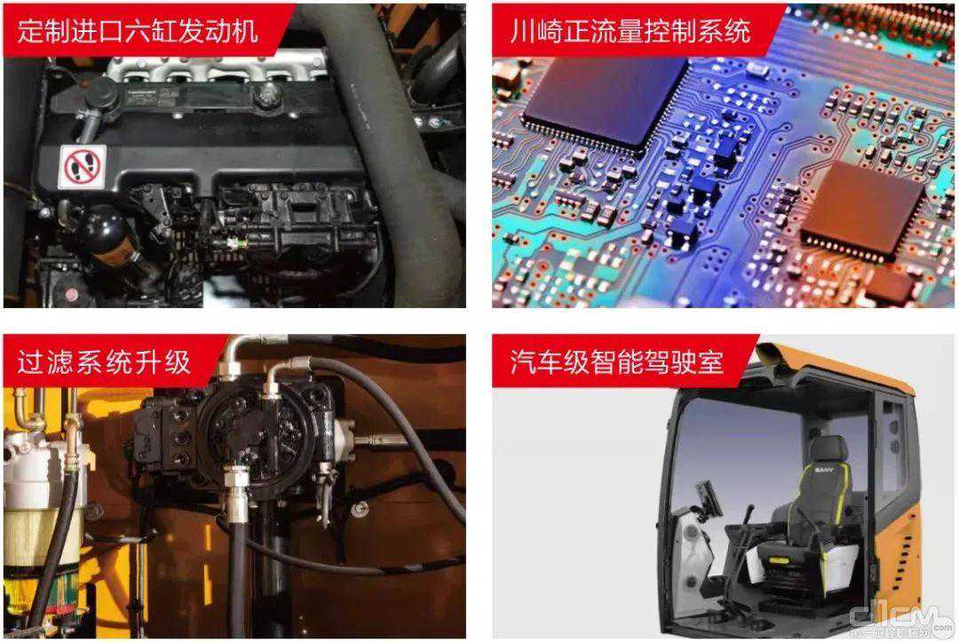 发动机同吨位发动机功率最大;同吨位通流量最大的川崎液压阀;专属定制的川崎液压泵;具有“低噪音、高效率、高压化”的优点;大容量多级过滤系统;三级燃油过滤系统+双层滤芯;纳米材料滤纸,实现深层过滤;结构件经久耐用。