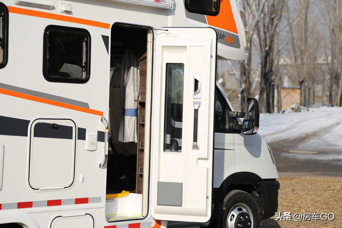 采用德国进口房车专用乘客门,带有纱网,在夏季也能够通风防蚊。