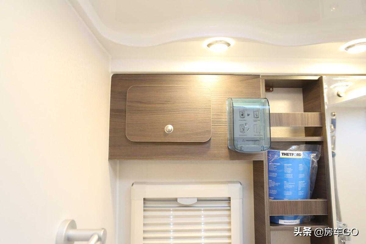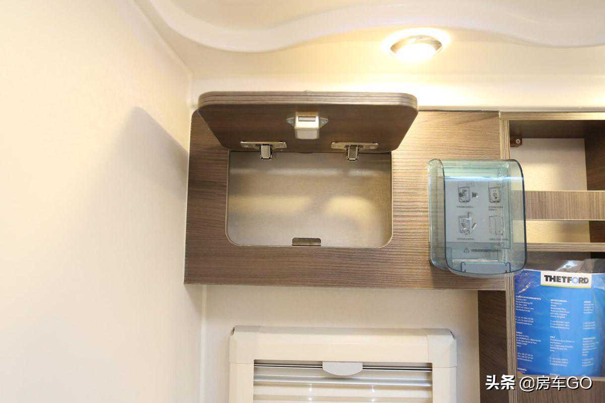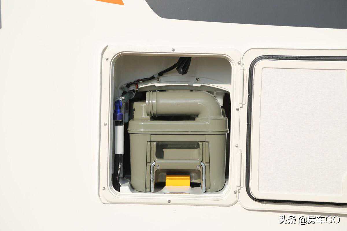 采用赛特福德盒式黑水箱,容积18升,车内马桶的排泄物就储存在这里。