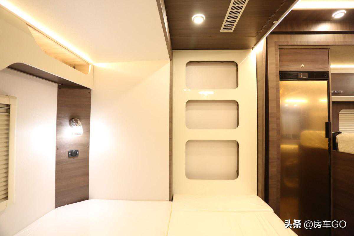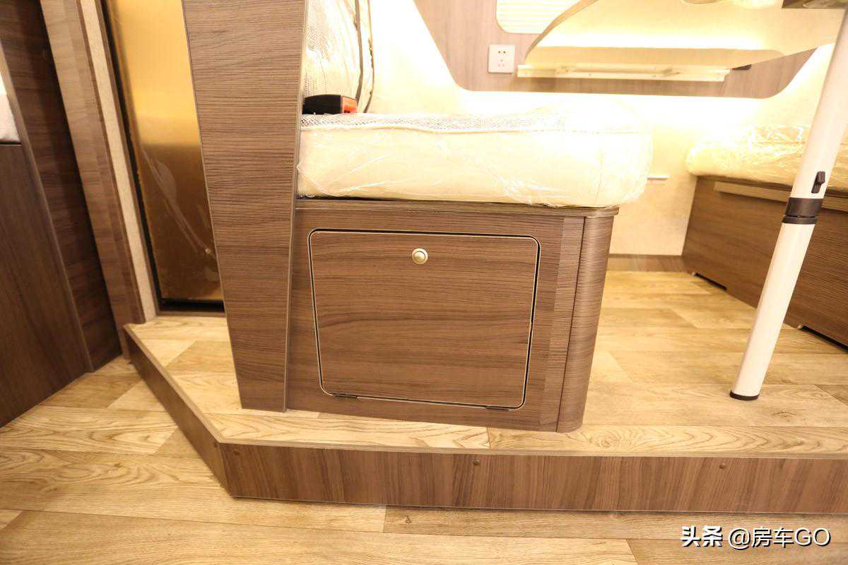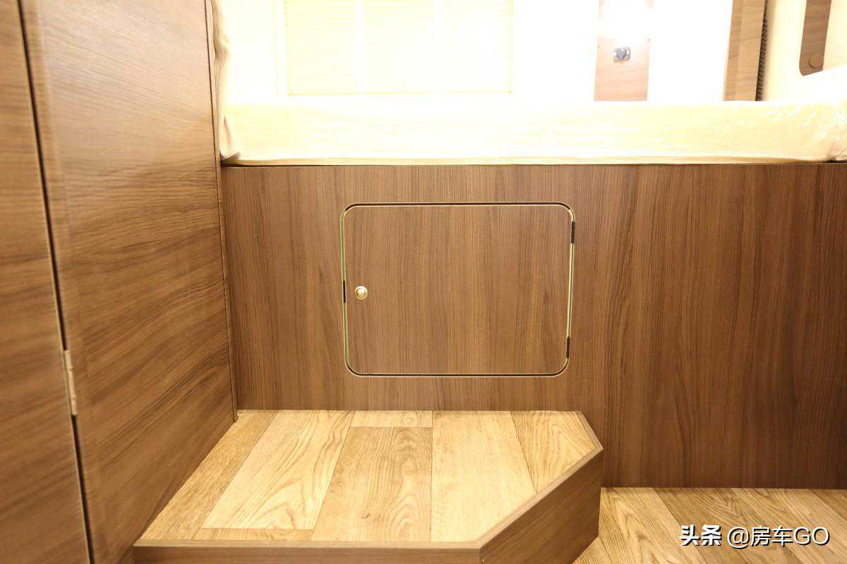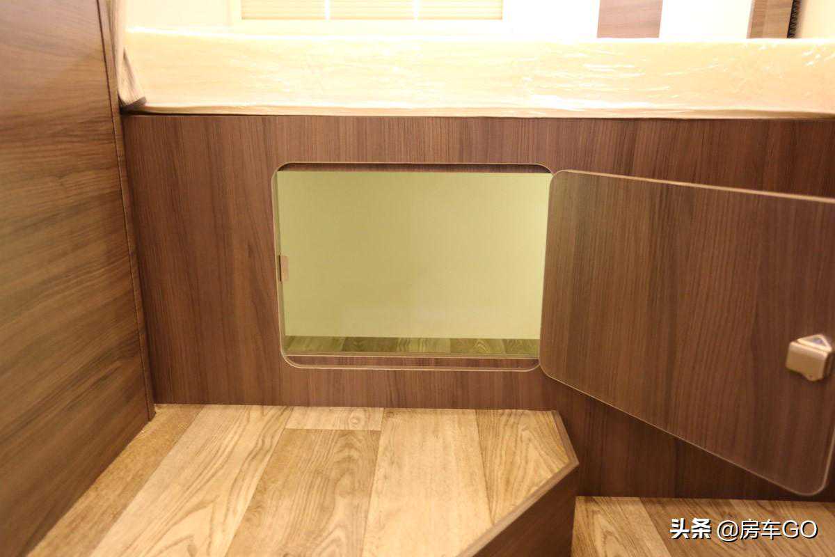 床铺下方是一处门板,直通后方贯通式行李舱,拿取物品更加方便。