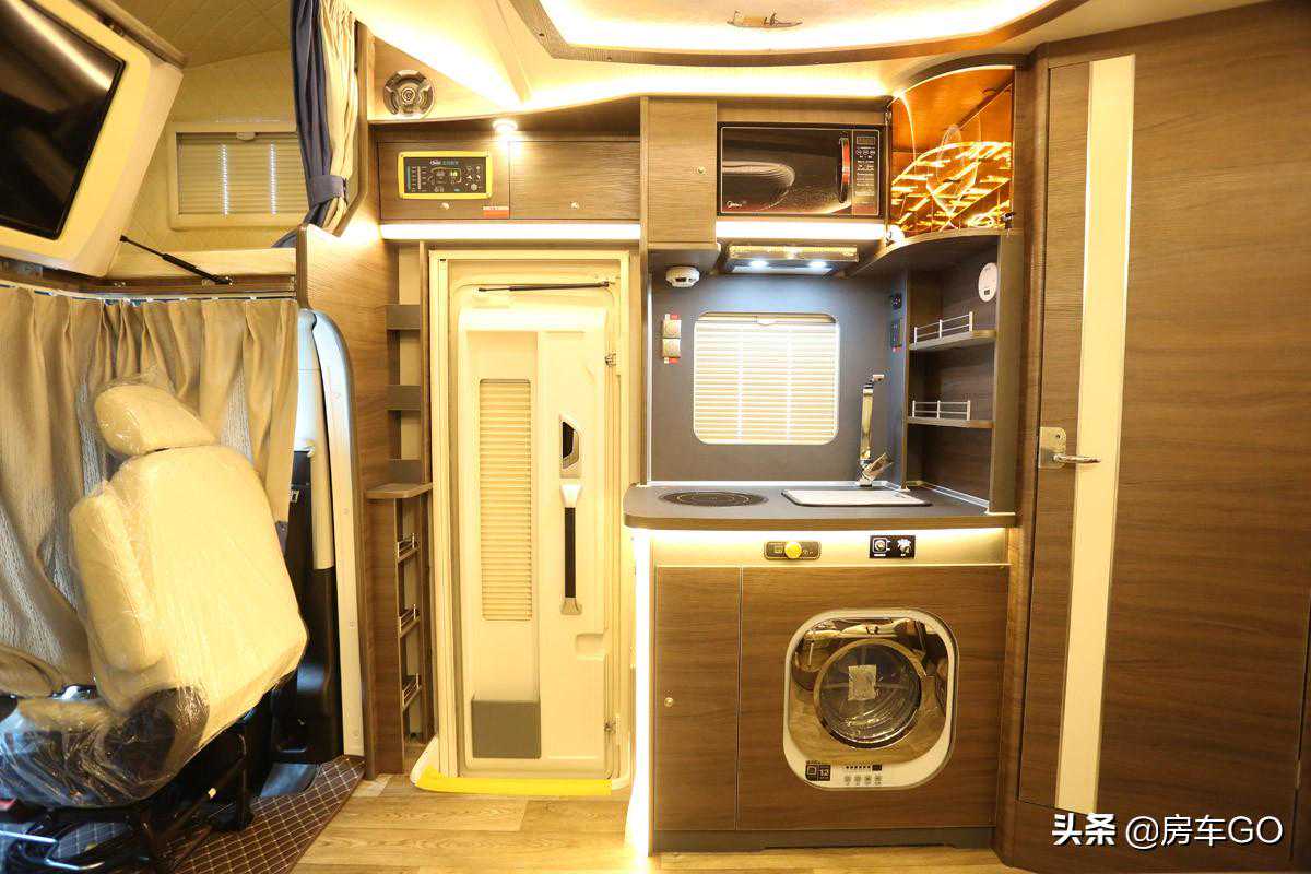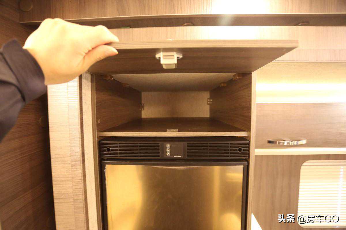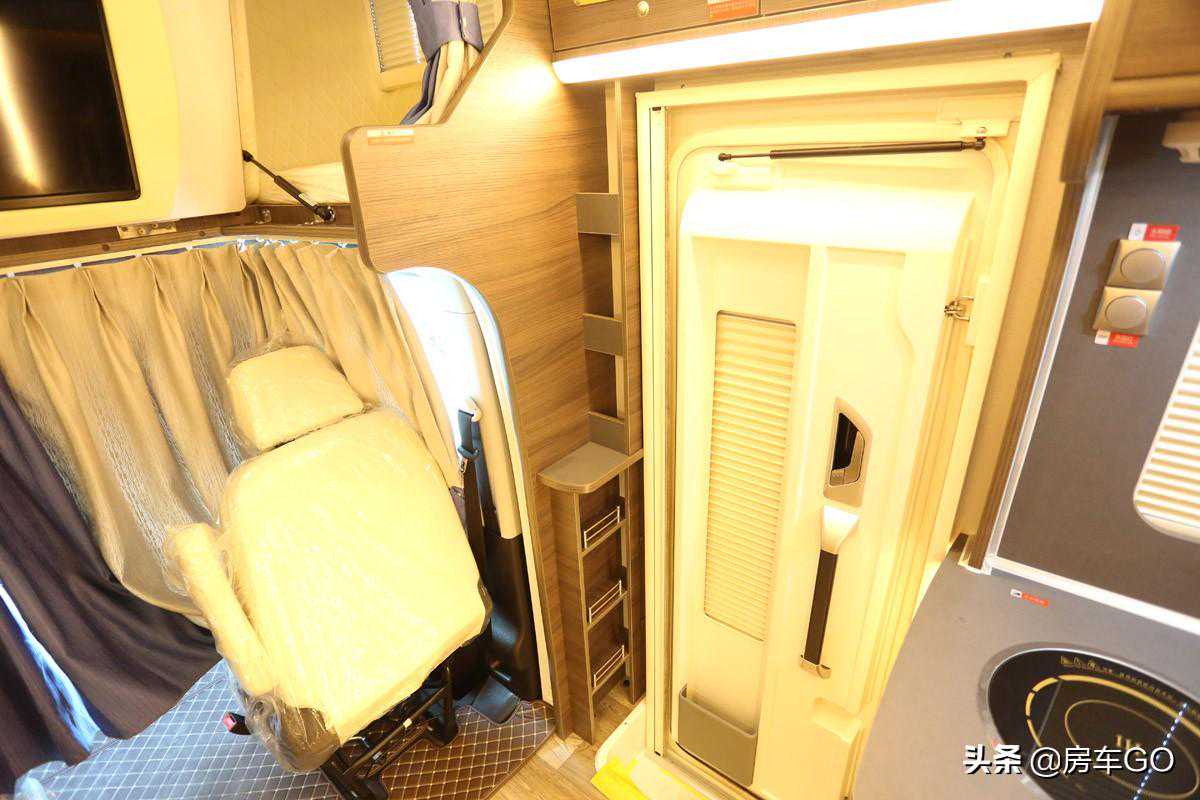 客厅的对侧就是车辆的厨房区了,一旁的乘客门侧空间也没有浪费,设计有多处小储物格。