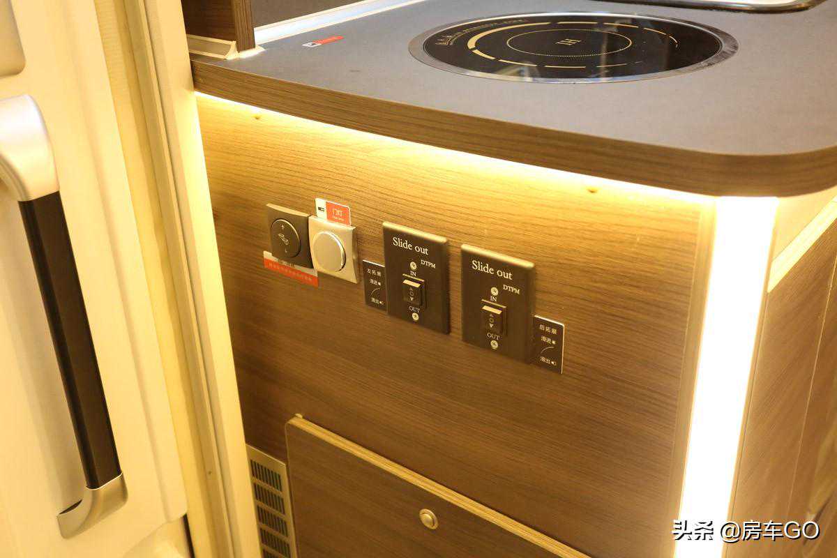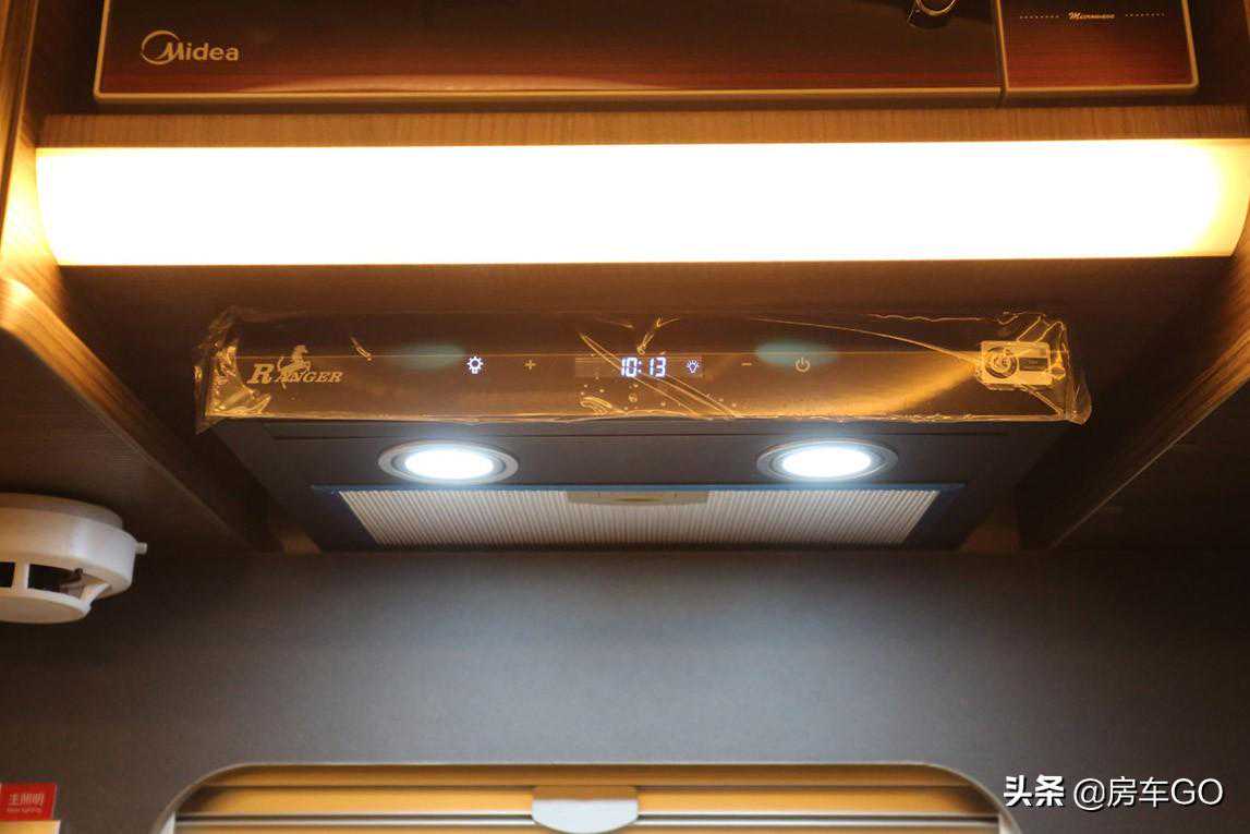 厨房装有城邦房车专用侧出风吸油烟机,带有照明功能。