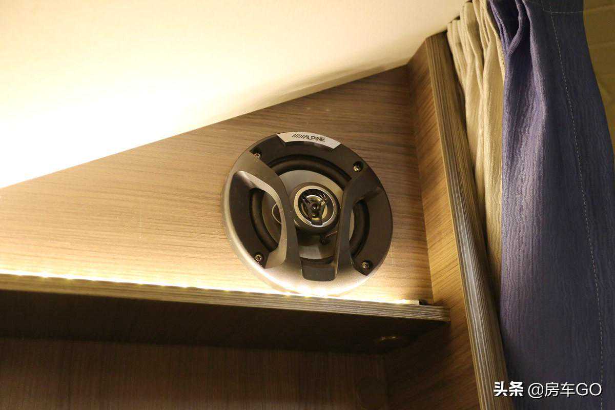 上方安装有日本进口阿尔派(ALPINE)车载音响,配套双扬声器,满足客厅的影音需求。