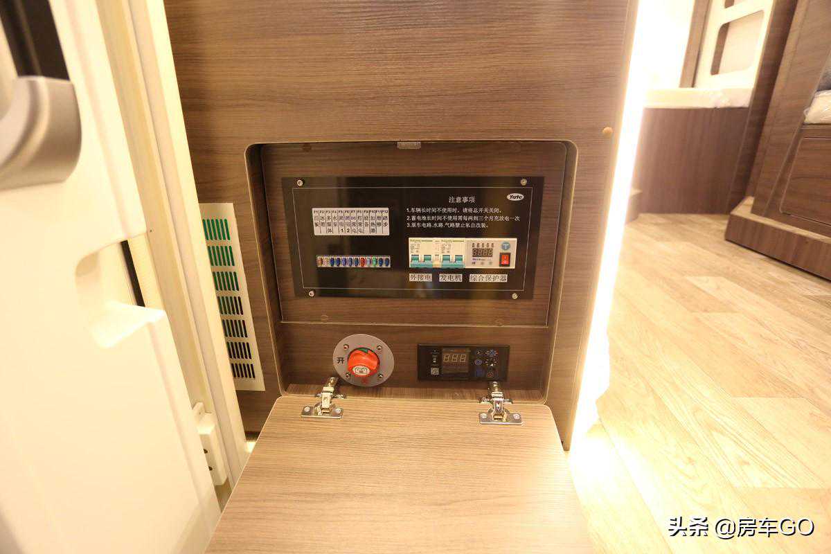 下方是车辆生活区电器的物理总闸,各个区域的空气开关标示清晰。