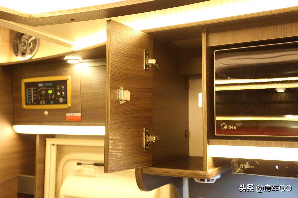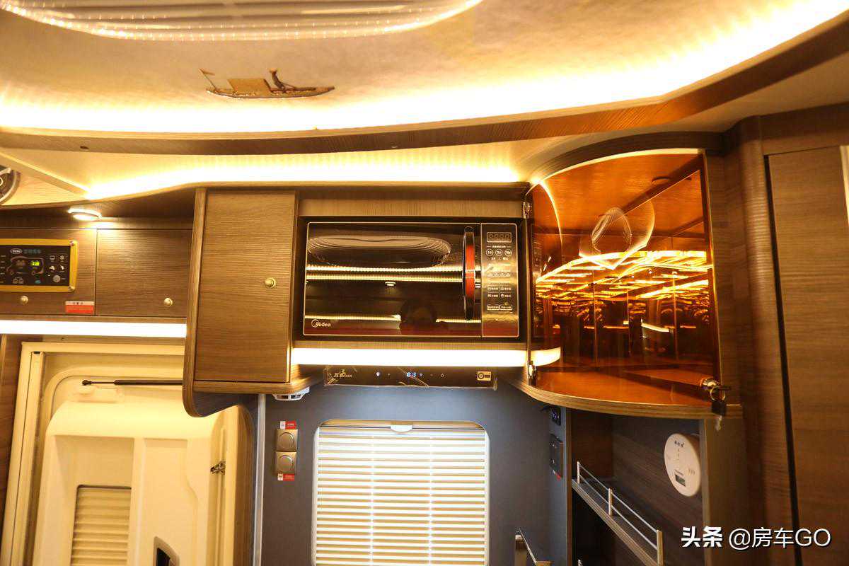 车顶装有美的1500W家用微波炉,同样为220V供电。
