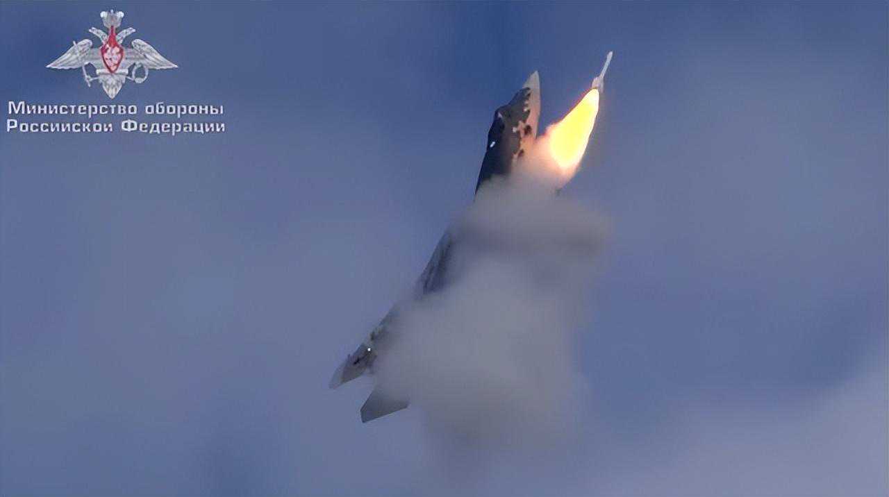这里因为距离很近,F14其实是在导弹的不可逃逸区内,不打热炎弹绝逼会被打中,但是这个多导弹的策略是正确的,尊重了专家意见的。当然也有buff,真实世界里是一半一半,需要赌赌运气。这里有一处不正确的地方是,苏57的格斗弹是从两侧机翼下的半埋式茧包里发射的而不是从腹部的主弹舱发射的。这里附上真实苏57发射格斗弹的照片
