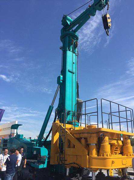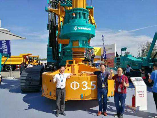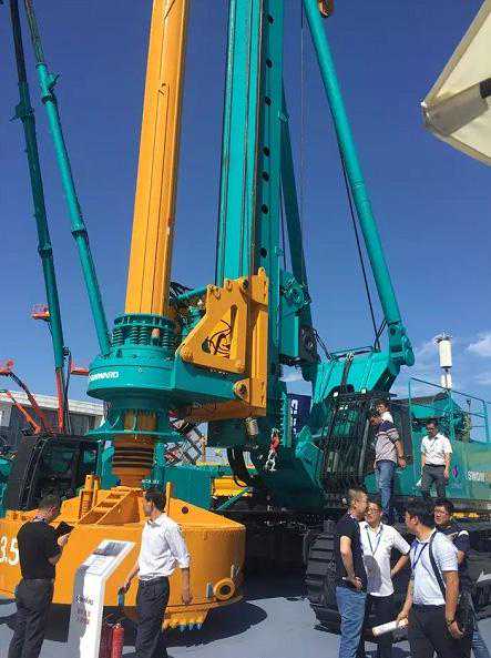 SWDM520旋挖钻机:这是山河智能去年宝马展上新推出的产品,有效填补了桩工市场大直径深孔入岩的空缺,至今不到一年时间,市场订单已达十余台。该产品具备可拆卸式专用底盘,更配有运输辅助油缸,方便装卸,且解决了运输超宽超重难题;选配升级后,最大钻孔深度可达135米。